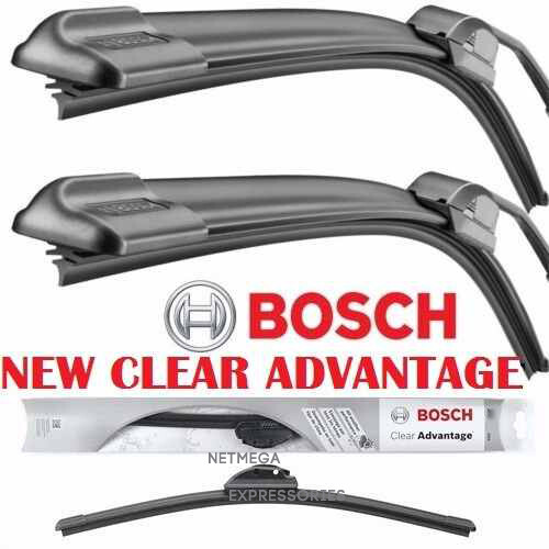 Bosch "Clear Advantage" Wiper Blade set of 2 (Pair) 18" + 18" This 2 piece set includes : 1x Driver side wiper blade 1x Passenger side wiper blade Bosch Clear Advantage wiper features : Patented beam design reduces exposed metal, resisting ice and snow build-up for all-weather performance Conforms to your windshield better than traditional wipers Graphite-treated wiping edge reduces friction for a quiet and smooth wipe in all seasons Sleek, Aerodynamic Styling Instructions included. Easy one-step installation with the "Click-On" adapter system. Genuine Bosch. Brand New in factory sealed package. Compatibility : (enter your vehicle's Year, Make & Model in the part finder above to ensure fit)