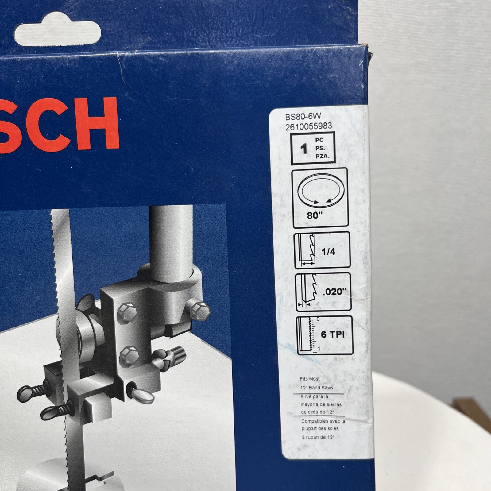Number of Items in Set:1Type:Band SawBrand:BoschBattery Capacity:Not ApplicableSuitable For:WoodCutting Depth:2 inBattery Included:Does Not ApplyUPC:Does Not ApplyModel:BOSCH BS80-6HSet Includes:BladesPower Source:Not ApplicableBlade Diameter:12 inBattery Technology:Not ApplicableBlade Length:80Number of Batteries:Not ApplicableVoltage:Not Applicablegtin13:Does Not Apply