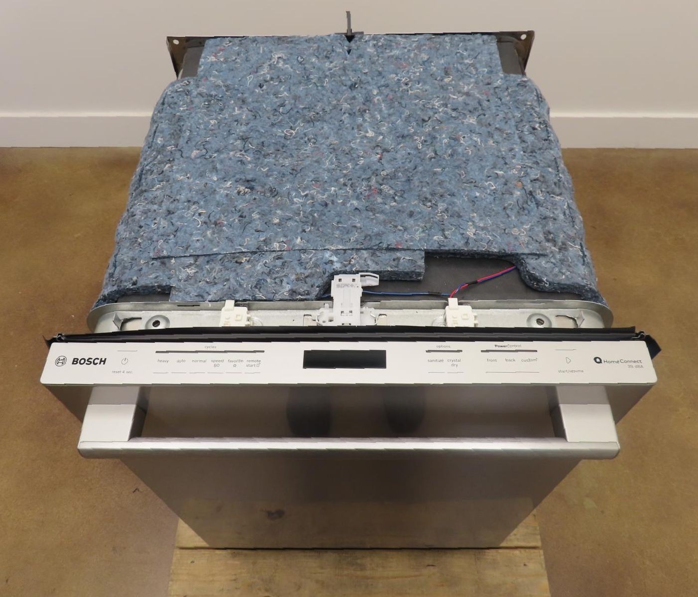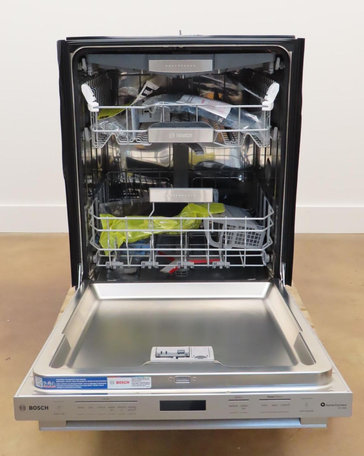 ebay template About Policies Shipping Returns Payment FAQ Contact Refrigerators Ovens Cooktops Microwaves Dishwashers Hoods Ice Makers Miscellaneous Ranges Warming Drawers Washers and Dryers Wine Cellars Other Bosch Benchmark Series SHX9PCM5N 24" Fully Integrated Built-In Dishwasher Images PLEASE NOTE that the following is the manufacturer's description, inclusions and accessories mentioned in the manufacturer's description may not be included with this particular item . This is a "what you see is what you get" item. Please contact us if you have any questions. PLEASE READ shipping info section carefully to know if this item will ship Ground or Freight and if you will be asked to add a lift gate. CANADA BUYERS are required to pay via PayPal ONLY . Credit card payments will not be accepted and will be cancelled . NJ, NY, WA, ID, CO, UT, DC, OR, MT, N, AZ, WY AND CA BUYERS: Free shipping DOES NOT APPLY! If you want your product to be shipped to NJ, NY, WA, ID, CO, UT, DC, OR, MT, NV, AZ, WY AND CA BUYERS please contact us for a shipping quote. Product Description Bosch Benchmark Series SHX9PCM5N 24 Inch Fully Integrated Built-In Smart Dishwasher 16 Place Setting Capacity, 9 Wash Cycles, Flexible 3rd Rack, 39 dBA Noise Level, Home Connect®, PowerControl™, TimeLight®, CrystalDry™, NSF Certified, and ENERGY STAR® Quick Specs: Width: 23 9/16 Inch Depth: 23 3/4 Inch Height: 33 7/8 Inch Capacity: 16 Place Settings Control Type: Touchpad Adjustable Upper Rack: Yes Third Rack Type: Adjustable Stainless Steel Interior: Yes WiFi: Yes Cycles: 9 Dry Type: Heated NSF Certified Rinse: Yes This unit is new out of box in good cosmetic condition. Some flaws are shown in the pictures: 1-SCRATCHES ON THE TOP OF THE CONTROL PANEL (PIC 4) . 2-VERY MINOR SCUFF INSIDE THE DOOR (PIC 6) . This unit comes with full manufacturer's warranty. This warranty does not cover cosmetic imperfections, functionality only. Pictures are for the actual unit. Free shipping is excluded for these states: NJ, NY, WA, ID, CO, UT, DC, OR, MT, NV, WY, AZ & CA. If you reside in one of these states, please call us at 205 407 6621 for shipping quotes. This item will require lift gate for delivery which is $89.00 Please call us at 205 407 6621 for more info. THIS ITEM MUST BE SHIPPED FREIGHT. SPECIFICATIONS: Brand: Bosch Series: Benchmark Series Model: SHP9PCM5N Dimensions Width: 23 9/16 Inch Depth: 23 3/4 Inch Height: 33 7/8 Inch Cutout Width: 24 Inch Cutout Depth: 24 Inch Cutout Height: 33 7/8 Inch Capacity Capacity: 16 Place Settings Appearance Type: Built In Color: Stainless Steel Accepts Panels: No Features Control Type: Touchpad Electronic Display: Yes Control Style: Fully Integrated Recessed Handles: Yes Child Lock: No Adjustable Upper Rack: Yes Third Rack Type: Adjustable Cutlery Tray: Yes Cup Shelves: Yes Tall Tub: No Stainless Steel Interior: Yes Water Heating: Yes Fingerprint Resistant: Yes Leveling Legs: Yes Interior Light: Yes Smart Home / App Compatible: Yes Smart Home Protocol / App Compatible: Home Connect® Remote Access: Yes Smart WiFi: Yes Remote Control: Yes Remote Monitoring: Yes Remote Diagnostics: Yes Smart Accessory Required: No Wash Features Cycles: 9 Options: 8 Dry Type: Heated Hard Food Disposer: No NSF Certified Rinse: Yes Sanitize Cycle: Yes Heavy Duty Wash: Yes Sound Level: 38 dB Leak Protection: Yes Steam Wash: No Technical Details Energy Star Rated: Yes CEE Rating: Tier I ADA Compliant: No Approved for Outdoor Use: No Voltage: 120 Volts Watts: 1,440 Watts FEATURES: 16 Place Setting Capacity Generous interior space means more clean dishes and fewer loads. Racks fit 16 full place settings including a dinner plate, salad plate, bowl, mug, and 16 5-piece sets of cutlery. Flexible 3rd Rack The Flexible 3rd Rack with fold-down sides adds 30% more loading area, perfect for utensils and ramekins. 38 dBA Noise Level The dishwasher runs quietly so your kitchen conversations aren't interrupted. Home Connect® Enhance your cleaning experience with WiFi-enabled Home Connect®. Access additional wash cycles and options or choose the right one for your needs using Smart Cycle. PowerControl™ Spray arm targets your dirtiest dishes with a deeper clean, no matter where you load them on the bottom rack. TimeLight® Shines the time remaining below the handle so you know the dishwasher is running. CrystalDry™ Option Patented CrystalDry™ technology transforms moisture into heat to get dishes, including plastics, 60% drier. PrecisionWash® With Bosch's PrecisionWash®, simply start your dishwasher and walk away. Precision spray arms target tough, stuck-on food while a sanitized option eliminates 99.9% of bacteria for a reliable clean, every time. Rackmatic® The adjustable upper rack easily adjusts to 9 different positions to allow taller items like stemware to fit, while leaving room for pots and pans below. 24/7 AquaStop® A precisely engineered tub and sensor system with a solid molded base to contain leaks. If a leak has occurred, it shuts down operation and automatically pumps out water to avoid contact with the floor. Now it even works 24/7 and can turn itself on. Interior Light A bright white interior light beautifully illuminates the dishwasher's interior and makes loading easier in dim lighting. EasyGlide® Plus Rack System Provides a smooth glide for easier loading and unloading on the upper rack. Concealed Water Heating Element Concealed water heater prevents plastic items on the bottom rack from melting and protects against accidental burns. Additional Features Wash Cycles - 5 + 4 additional in Home Connect® Options - 4 + 4 additional in Home Connect® Stainless Steel Tub Five-Level Wash Anti-Fingerprint Finish NSF Certified ENERGY STAR® Contact Info Return Info Shipping Info Payment Info Contact Info We are open Monday through Friday 8 am to 4 pm central time. We are not open during weekends but we will try our best to respond to all your requests within 24 hours. Please contact us via eBay for any quest