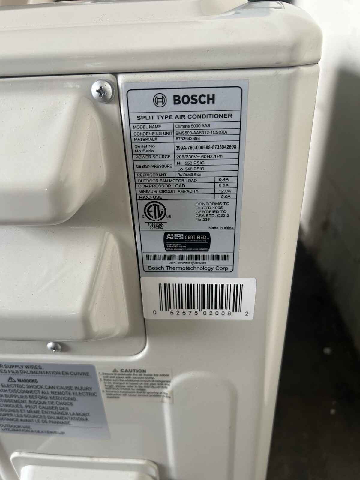 This Bosch BMS500-AAS012-1CSXXA Climate 5000 minisplit condenser is the perfect addition to your home comfort system. Designed for use with the Climate 5000 system, this condenser is compatible with a range of models. It's easy to use remote control ensures that you can adjust the temperature of your home with ease. With a BTU capacity of 12000 and a voltage rating of 230V, this condenser is highly efficient and reliable. It's also designed to be easy to install and maintain, making it a great choice for any homeowner. Whether you're looking to upgrade your current system or replace a faulty condenser, this Bosch minisplit condenser is the ideal solution.