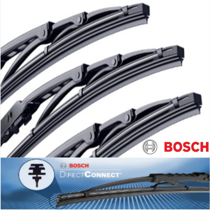 Set of 3 Bosch Direct Connect 22"/ 22"/ 16" Wiper Blades- FRONT Left+Right+REAR Description 40522 + 40522 + 40516 Bosch DirectConnect Wiper Blade Features and Benefits All steel frame construction for dependable wiping Dual steel tension springs supports the wiping edge for a consistent clean wipe Flow-through frame reduces blade lift-off Graphite-treated wiping edge reduces friction and noise Quick and easy installation Specifications Adapters Included No Adapters Required No Length 22 in / 22 in / 16 in Frame Color Black Blade Type Conventional Refillable No Winter Blade No Wiper Blade Connection Type Male Pressure Point Quantity 6 Attached Spoiler / Aerofoil No Heated (Wiper Blade) No Prop 65 Warning Label Required? No Quick Connect Hardware Included Yes Wiper Blade Design All-Season Wiper Blade Material Natural Rubber w/Graphite Wiping Edges 1 RETURN POLICY YOU MUST CONTACT US BEFORE RETURNING A PART. IF ANT PART IS DEFECTIVE WE CAN ONLY EXCHANGE IT. A 15% RESTOCKING FEE IS APPLICABLE UNLESS WE SEND YOU A WRONG DOES NOT FIT YOUR CAR. Shipping Information WE OFFER FREE SHIPPING TO LOWER 48 STATES, PUERTO RICO, ALASKA, HAWAII, US PROTECTORATES, APO/FPO MAY NEED TO PAY AND EXTRA SHIPPING COST ON ITEMS OVER 1 POUND( 1LB).