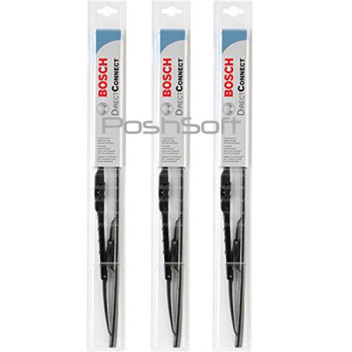 Bosch Direct Connect Wiper Blades - Set of 3 (Size: 20" / 20" / 17") This 3-piece set includes : 1x Driver Side Wiper Blade 1x Passenger Side Wiper Blade 1x Rear glass wiper blade (Complete set) All steel frame construction for dependable performance Precision cut, graphite-treated rubber wiping edge reduces friction and noise Bosch's 'Direct Connect' system allows for easy one-step installation Genuine BOSCH. Brand New in factory sealed package. 3 complete wiper blades. Instructions included. Compatibility list : (Enter your vehicle's 'Year/Make/Model' in the part finder above to ensure fit) see list above Payment & Shipping We accept all forms of payment (credit card, debit card, Paypal) through Paypal. Ships fast within 1 business day of payment. Bosch is a worldwide leader in high performance and durable wiper blades meeting and exceeding OEM (Original Equipment Manufacturer) specifications.