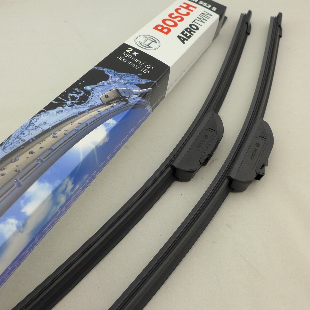 Bosch Scheibenwischer für Vorne und Hinten 1 Paar (2 Stück) Aerotwin Retrofit Vorne + 1 Stück (Serie) hinten für Mazda 2 DL DJ NV200 Impreza Der BOSCH Aerotwin ist ein Flachbalken- Scheibenwischer für verschiedenste Fahrzeuge. (siehe Fahrzeugliste) Retrofit Ausführung: Zur Nachrüstung bei Fahrzeugen mit Hakenarmbefestigung am Wischarm. Hervorragende Wischleistung – entspricht der Serienausstattung. Inkl. Multi Clip Adapter für vorne (hinten Serienbefestigung). Länge: Vorne: 550mm + 400mm / Hinten: 350mm Herstellernummer: AR552S / 3397118984 + H354 / 3397011433