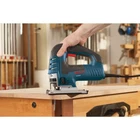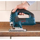 Bosch JS470E Top-Handle 7.0 Amp Top-Handle Jig Saw Power Tools Low-vibration design and variable speed for smooth accurate cuts Easy T-shank no-touch blade-ejection lever, for toolless change Includes: Jig saw blades, anti-splinter insert, overshoe and case The Bosch JS470E Top-Handle Jig Saw provides unsurpassed cut precision. Finish carpenters and kitchen and bath installers will appreciate the best-in-class 7.0 Amp motor and variable-speed control, making this saw an excellent choice for curve-cutting. A dial on the back of the tool controls the maximum speed and the accelerator trigger controls the operating speed. Built with an aluminum gearbox and an insulated cover, this jig saw comes with a low-vibration plunging design and Constant Response circuitry for consistent speed under load. It has a large die-cast aluminum footplate. The JS470E's multidirectional blade clamp delivers superior grip of T-shank blades (but it does not accept U-shank blades). The blade-ejection lever that eliminates need to touch hot blades. It has a dust blower for max cut-line visibility. Powerful jig saw - with 7.0 amp rating Large die-cast aluminum footplate - with steel insert and on-board storage of bevel hex key Variable-speed control - includes a dial for max speed and accelerator trigger to control operating speed Constant Response circuitry - for consistent performance under load Multi-directional blade clamp - supplies superior grip of T-shank blades (does not accept U-shank blades) Aluminum gearbox with insulated cover - offers durability Toolless blade-change system - furnishes fast blade insertion and a blade-ejection lever; no need to touch hot blades Four orbital-action settings - provide varied blade strokes for smooth to aggressive cuts Internal precision control - supplies a precision-machined plunging system and low-vibration design for enhanced accuracy and extremely smooth operation Dust blower with on/off switch - for keeping the cut line visible and free of dust Ergonomic top handle with soft-grip areas - supplies a solid, comfortable grip Ambidextrous lock-on button - for steady long cuts and user comfort and control Includes: (1) JS470E 7.0 Amp Top-Handle Jig Saw, (1) Non-Marring Overshoe, (1) Anti-Splinter Insert (JA1013),(1) T-Shank Jig Saw Blade, (1) Bevel Wrench, (1) Carrying Case Onboard storage for easy accessibility to the bevel wrench 8 ft. cord provides a long reach Includes a carrying case UL listed Amperage (A) 7 A Bevel Capacity (degrees) 45 ° Color Family Blue Condition New Construction Material Plastic Cord Length (ft) 8 ft Corded Tool Type Jig Saw Cordless/Corded Corded Cuts Through Metal,Wood Included Accessories Case,Dust Blower Length of Stroke (in) 1 in Power Source Electric Power Tool Features Adjustable Shoe,Keyless Blade Change,No Tool Blade Change,Variable Speed Product Weight (lb) 10.38 lb Returnable 90-Day Strokes per Minute 3100 Tools Product Type Power Tool Certifications and Listings UL Listed Manufacturer Warranty 1 Year Product Depth (in) 15 in Product Height (in) 4.5 in Product Width (in) 13.5 in 13.5 inches x 15.0 inches x 4.5 inches. Weight: 10.38 lb