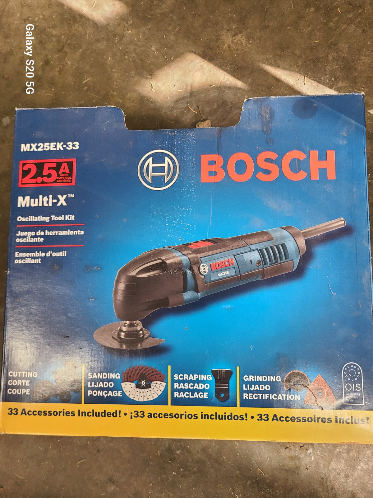 For sale is Bosch model MX25EK-33 oscillating tool kit . Comes as pictured with original box and carrying case . Most of the blades and sanding discs are unused that came with it . Hardly used, excellent condition, only selling because I went to the battery type saw . Thank you . .