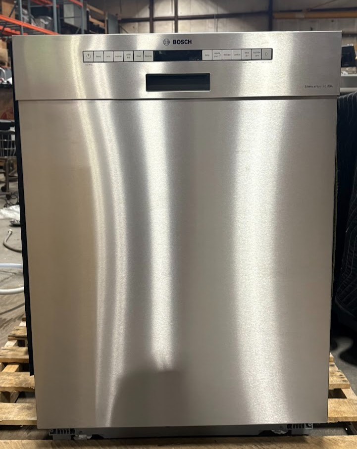 BOSCH SHE53B75UC SilencePlus 300 Series 24" 46 dBa Stainless Steel Dishwasher This dishwasher is new and has never been installed. It was tested here at our warehouse and ran a full cycle with no issues at all. The top of the dishwasher door has some smaller cosmetic blemishes like light scratching and scuffs. Cosmetic blemishes are shown in the listing. The dishwasher comes with the accessories shown. Please do not assume extra accessories that are not shown in the listing are included. FREIGHT SHIPPING: SHIPPING IS CALCULATED BASED ON YOUR LOCATION FOR ANYWHERE IN THE LOWER 48 STATES. ALL SHIPMENTS ARE INSURED. WE MUST SHIP TO YOUR EBAY ADDRESS ENTERED AT CHECKOUT PER EBAY RULES. After payment we will ship your products with a freight trucking company strapped to a pallet and shrink wrapped for safety of your order. Please allow 7 to 10 days to arrive. If your shipment is going to a commercial address, a semi truck has to be able to gain access to the business and it cannot be in a residential area. If your shipment is going to a residential address, it is vital that you are present when shipment arrives. The Trucking Company will call you before delivery. Liftgate service is available by request. It is important that you open or inspect all equipment pieces you purchased from us. Budgetsavers takes every precaution to package your items properly for shipment. In the event that damage is evident, BE SURE to note the damage on the trucking bill of lading and accept the shipment. Do not let the driver leave without noting the damage on the bill of lading. ACCEPTANCE IMPORTANT READ THE BELOW STATEMENT: IF YOU OR SOMEONE ELSE ON YOUR BEHALF ACCEPTS THE DELIVERY WITH NO DAMAGE NOTED AND DAMAGE IS FOUND LATER YOU WILL NOT BE ABLE TO MAKE A CLAIM. ONCE YOU ACCEPT THE FREIGHT, YOU WAIVE ALL RIGHTS TO MAKING A FREIGHT CLAIM. SO PLEASE INSPECT THE ITEM DURING DELIVERY AND NOTE ANY DAMAGE ON THE BILL OF LADING BEFORE THE FREIGHT DRIVER LEAVES.