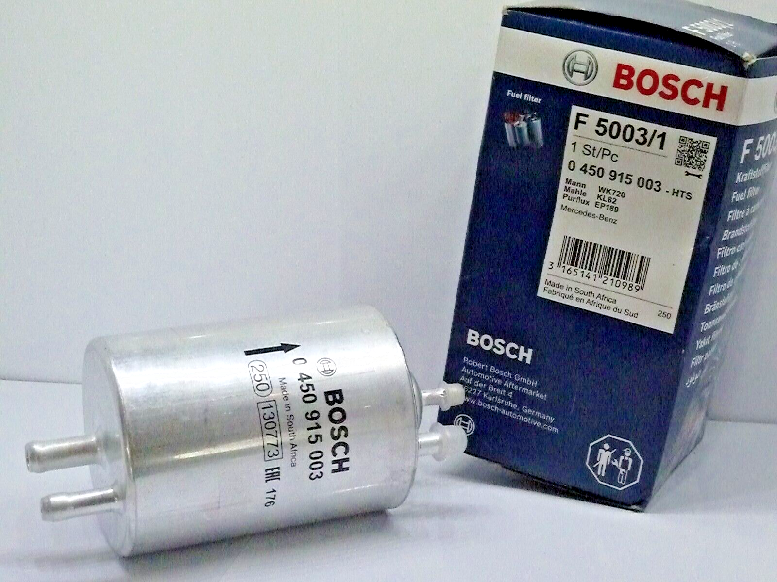 BOSCH 0 450 915 003 Kraftstofffilter Leitungsfilter, 8mm, 8mm Filterausführung: Leitungsfilter Höhe [mm]: 157,8 Höhe 1 [mm]: 98 Durchmesser [mm]: 74,5 Einlass-Ø [mm]: 8 Auslass-Ø [mm]: 8 Kraftstoffaufbereitung: Benzineinspritzung Volumen [L]: 0,3 BOSCH 71058, BOSCH F50031 CHRYSLER Crossfire Coupe (Baujahr 07.2003 - 12.2008, 218 - 335 PS, Benzin) CHRYSLER Crossfire Roadster (Baujahr 05.2004 - 12.2008, 218 - 335 PS, Benzin) MERCEDES-BENZ SL Cabrio (R129) (Baujahr 05.1998 - 10.2001, 204 - 306 PS, Benzin) MERCEDES-BENZ G-Klasse SUV (W463) (Baujahr 07.1997 - ..., 215 - 388 PS, Benzin) MERCEDES-BENZ C-Klasse Limousine (W202) (Baujahr 06.1997 - 05.2000, 170 - 306 PS, Benzin) MERCEDES-BENZ E-Klasse Limousine (W210) (Baujahr 12.1996 - 03.2002, 163 - 354 PS, Benzin) MERCEDES-BENZ C-Klasse T-modell (S202) (Baujahr 06.1997 - 03.2001, 129 - 306 PS, Benzin) MERCEDES-BENZ E-Klasse T-modell (S210) (Baujahr 12.1996 - 03.2003, 163 - 354 PS, Benzin) MERCEDES-BENZ SLK (R170) (Baujahr 03.2000 - 04.2004, 163 - 354 PS, Benzin) MERCEDES-BENZ CLK Coupe (C208) (Baujahr 06.1997 - 12.2003, 163 - 354 PS, Benzin) MERCEDES-BENZ G-Klasse SUV Cabrio (W463) (Baujahr 11.1997 - ..., 215 - 388 PS, Benzin) MERCEDES-BENZ CLK Cabrio (A208) (Baujahr 03.1998 - 03.2002, 163 - 347 PS, Benzin) MERCEDES-BENZ S-Klasse Limousine (W220) (Baujahr 10.1998 - 08.2005, 204 - 367 PS, Benzin) MERCEDES-BENZ S-Klasse Coupe (C215) (Baujahr 03.1999 - 03.2006, 306 - 444 PS, Benzin) MERCEDES-BENZ C-Klasse Limousine (W203) (Baujahr 05.2000 - 02.2007, 129 - 367 PS, Benzin) MERCEDES-BENZ C-Klasse Sportcoupe (CL203) (Baujahr 03.2001 - 05.2008, 122 - 272 PS, Benzin) MERCEDES-BENZ C-Klasse T-modell (S203) (Baujahr 03.2001 - 08.2007, 129 - 367 PS, Benzin) MERCEDES-BENZ SL Cabrio (R230) (Baujahr 10.2001 - 01.2012, 231 - 476 PS, Benzin) MERCEDES-BENZ E-Klasse Limousine (W211) (Baujahr 03.2002 - 12.2008, 177 PS, Benzin) MERCEDES-BENZ CLK Coupe (C209) (Baujahr 06.2002 - 05.2009, 163 - 367 PS, Benzin) MERCEDES-BENZ CLK Cabrio (A209) (Baujahr 02.2003 - 03.2010, 163 - 582 PS, Benzin) MERCEDES-BENZ CLC (CL203) (Baujahr 05.2008 - 06.2011, 129 - 272 PS, Benzin) MERCEDES-BENZ E-Klasse Pritsche / Fahrgestell (VF210) (Baujahr 07.1999 - 11.2002, 204 PS, Benzin PUCH G-modell (W463) (Baujahr 04.1998 - 12.1999, 296 - 354 PS, Benzin) OE Referenznummer(n) vergleichbar mit Original-Ersatzteil-Nummer: OE 002 477 30 01 — MERCEDES-BENZ OE A 002 477 30 01 — MERCEDES-BENZ OE A 002 477 64 01 — MERCEDES-BENZ OE 002 477 64 01 — MERCEDES-BENZ OE A 002 477 31 01 — MERCEDES-BENZ OE A 002 477 53 01 — MERCEDES-BENZ OE 002 477 53 01 — MERCEDES-BENZ OE 0024773101 — MERCEDES-BENZ / STEYR OE 05097052AA — CHRYSLER OE 5097 052AA — CHRYSLER OE 71058 — BOSCH OE F 5003/1 — BOSCH OE AK 11-KJD — KAYSER
