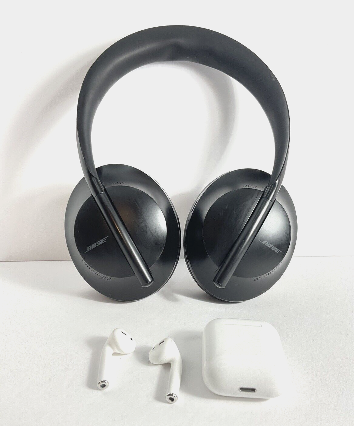 Bose 700 Bluetooth Wireless Over-Ear Headphones & Apple Airpods 2nd Gen Headphones & Apple Airpods are in good used condition, they show normal signs of use, small dings, scratches, etc… nothing that affects the way they work… Sound is great, clear no static.. Please see pictures as they are part of the description. Ask all questions prior to bidding. Selling as is in used condition. All serial numbers will be recorded for our records
