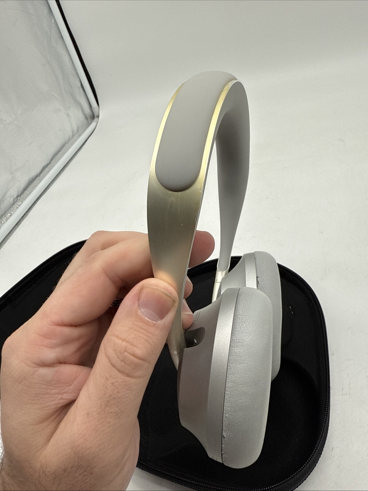 Works well, has some cosmetic wear as pictured. The Bose 700 Noise Cancelling Headphones in Silver are a premium set of wireless Bluetooth headphones with an adjustable headband and built-in microphone. They feature noise cancellation technology, a rechargeable battery, and a detachable cable for versatile use. The headphones have a sleek black design with ear-cup form factor for comfortable over-the-ear wear. Additionally, they come with a built-in on/off switch for convenience in controlling the device. Overall, the Bose 700 headphones offer high-quality audio performance and advanced features for an enhanced listening experience.