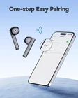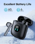 About this item 60 Hrs playtime & LED Power Display:Bluetooth headphones are equipped with large capacity rechargeable battery, you can get 6 hours of listening life on a single charge, with the charing case that extends it to total 60 hours. So you never worry about battery shortage. The numbers on the LED screen represent the battery percentage of the charging case. The flashing indicator lights respectively indicate the charging status of the left and right earbuds Hi-Fi Sound Quality and Clear Call : The wireless headphones adopts dual 10mm low-distortion composite dynamic drivers, delivering an immersive sound experience.The Bluetooth earbuds produce deep bass, clear vocals, and bright treble, achieving full low-frequency rebound and pure mid-to-high frequency clarity. In addition, the HD voice call technology brings a clearer sound to your calls, giving you a whole better feeling Bluetooth 5.3 for Pairing: The wireless headphones are equipped with the Bluetooth 5.3 technology. Just open the lid of charging case, these wireless Bluetooth headsets will auto turn on and connect to previously paired device instantaneously.(After the 1st successful pairing.) No more worries about signal loss or music dropouts, rid of cord, enjoy true wireless Hand-free Touch Control: These wireless Bluetooth earphones are designed with sensitive touch control, that will be more easy and stress-free. You can switch songs, play/pause, adjust volume, or make phone call on the ear buds. The ultra-light and ergonomic design allows you to wear them for a long time with on discomfort or pain Using Modes & IPX7 Waterproof: You can not only enjoy stereo audio in binaural mode but also using one ear bud in mono mode. The IPX7 sweat and water resistance protects the wireless earphones from sweaty and makes it perfect for running, biking, hiking, gym, sports, yoga, business etc
