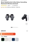 The Bose QC QuietComfort Ultra Noise Cancelling Earbuds in Black are in-ear earbuds with active noise cancellation, Bluetooth connectivity, and touch control. They feature a built-in microphone, are water-resistant, and offer wireless technology. These earbuds provide a high-quality audio experience with the added convenience of noise cancellation and wireless freedom.