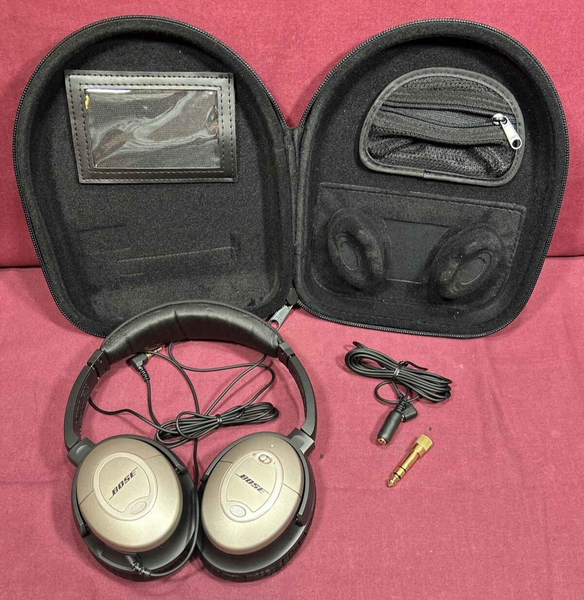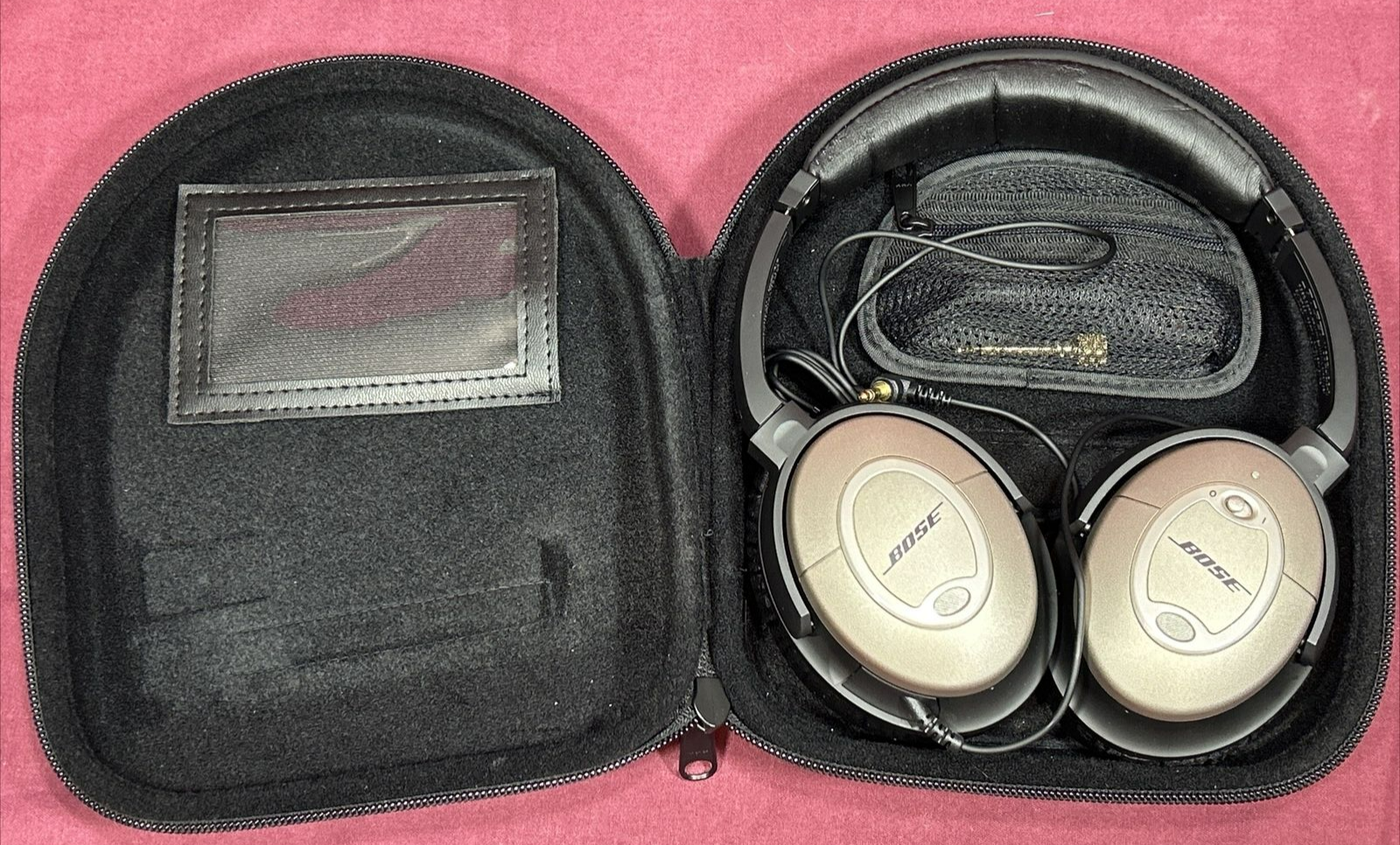 Enjoy superior sound quality with these Bose QC2 Quiet Comfort Over Ear Noise Cancelling Headphones. With their sleek silver and black design, they are perfect for both casual and professional use. The ear-cup (over the ear) style offers maximum comfort and noise cancellation, making them ideal for use during travel or in loud environments. Tested and working as it shoud. Easily connect these headphones with any device equipped with a 3.5mm jack, and revel in their top-of-the-line features, including noise cancellation technology. These headphones are from the respected Bose brand and come in the model QC-2. Don't miss out on this opportunity to experience high-quality audio with these headphones.