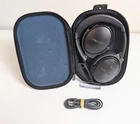 Check out these Bose Quiet Comfort QC35 II Noise Cancelling Wireless Headphones in black! Item has been tested and works great. Headband and ear cups are in good condition. Good battery life. Note that there may be scratches/scuffs consistent with age and usage. See pictures for further details. Comes with 1 set of Bose QC35 II headphones in black and 1 OEM Bose softshell carrying case. No other accessories included. 30 day returns accepted! Free shipping via USPS Ground Advantage!