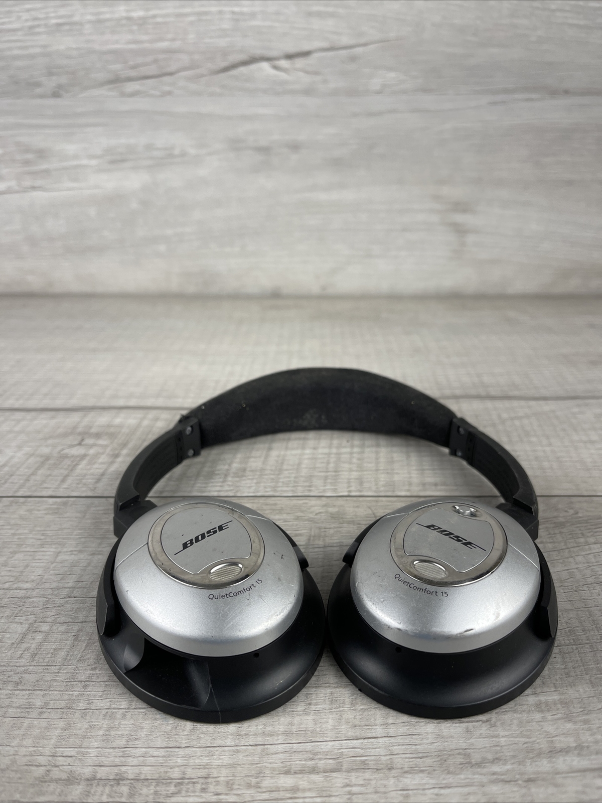 Bose QuietComfort 15 Over the Ear Headphones Bose QC15 Wired Headsets | Tested. Please note the sponge on top it’s coming off Please note the this item has marks and scratches from the previous owner Only what you see on the picture Please see the picture for reference on the conditions Picture at the best description on this item Please feel free to ask any questions before you bought this item Your satisfaction is very important to us, if you experience a problem of any kind with your purchase please contact us first before leaving any feedback or opening any claims. Issues will be resolved more efficiently if you contact us first and deal directly with us. We do stand behind our products and will do anything in our power to make sure that you feel satisfied with your purchase.