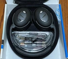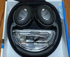 Checkout my store for more goodies: Items for sale by lukesten | eBay Bose QuietComfort 15 Acoustic Noise Cancelling Around Ear (AE) Headphones QC-15 with Case Brand New Brand Bose Model Name Quietcomfort 15 Color Tripple-Black Form Factor Over Ear Connectivity Technology Wired About this item The best around-ear Bose headphones reduce noise across a wide range of frequencies. Connectivity Technology: Wired/Wireless Enjoy music and movies with clear and lifelike sound Comfortable, around-the-ear fit; ideal for frequent flyers Includes airline adapter, carrying case, and two audio cables-one with mic/remote for iPhone/iPod control and hands-free iPhone calling AAA battery included: 35 hours average life Product Description QuietComfort 15 headphones feature exclusive Bose advancements in noise reduction technology. You hear less noise and more of your music and movies-with quality sound and a long-lasting comfortable fit. You won't find this combination of benefits in any other headphone.Connectivity Technology: Wired,Jack Type: Angled(3.5 mm) and One (1) Year Warranty. Bose® QuietComfort® 15 Acoustic Noise Cancelling® Headphones The best Bose® around-ear headphones reduce noise across a wide range of frequencies Enjoy music and movies with clear and lifelike sound Comfortable, around-the-ear fit Includes cable with remote for iPhone®/iPod® control, mic for hands-free iPhone calling AAA battery: 35 hours average life Ideal for frequent flyers Full Spectrum Noise Reduction They're the best Bose around-ear headphones, period. QuietComfort 15 headphones feature exclusive Bose advancements in noise reduction technology. You hear less noise and more of your music and movies-with quality sound and a long-lasting comfortable fit. You won't find this combination of benefits in any other around-ear headphone. Bose technology at work Engine roar fades to a whisper Within every pair of QC®15 headphones, advanced electronics use microphones inside and outside each earcup to sense the sounds around you-and reduce the noise. Proprietary ear cushion technology blocks some of the noise before it even reaches your ears. Together, these Bose innovations add up to a more enjoyable listening experience. Relax with music - or without it QC15 headphones also feature proprietary signal processing and TriPort® acoustic headphone structure for more lifelike sound-including deep low notes-from small, lightweight earcups. And when you'd rather relax without music, switch on QC headphones to simply reduce the noise around you, wherever you are. Take calls. Take control QC15 headphones come with a cable customized for select Apple® products. A three-button remote and microphone let you take calls on your iPhone and control music functions on other Apple devices. You can also purchase a mobile kit that lets your QC headphones work with other cell phones, too. Welcome to a better-sounding world Switch between calls and music with a press of a button When you fly with QC15 headphones, engine roar fades to a whisper. When you listen at home or at work, fewer distractions get in the way of your music. And when you want to stay connected, calls are just a button-press away. QC15 headphones continue to give you more of what you want to hear, and less of what you don't. QuietComfort 15 Acoustic Noise Cancelling Headphones Highlights Significant noise reduction across a wider range of frequencies. Proprietary Bose innovations use microphones both inside and outside each earcup to sense and reduce the sounds around you. TriPort acoustic headphone structure , another Bose exclusive, features tiny vents in the earcups to enable a tonally-balanced audio performance-including reproduction of deep, low notes-from relatively small and lightweight headphones. Active equalization electronically tunes the headphones' frequency response, enabling outstanding audio performance. Interchangeable audio cables , one for general use, and one just for select Apple products, offer greater convenience than permanently connected Y-cables. The inline remote puts control right at your fingertips Inline microphone allows for hands-free iPhone conversation and access to certain voice applications, such as VoiceOver and Voice Control, in other Apple products. Inline three-button remote switches between calls and music, and controls volume, track selection and voice applications on select Apple products. Advanced ear cushions use new materials in a proprietary design to establish a critical acoustical seal-helping to further reduce noise while providing a comfortable fit. Fold-flat earcups rotate 90 degrees for easy storage and portability in the included case. Slim carrying case helps protect headphones and accessories during travel. Apple cable compatibility The QuietComfort 15 inline remote and microphone cable is compatible with iPod nano (4th, 5th and 6th generation), iPod classic (120GB, 160GB only), iPod touch (2nd, 3rd and 4th generation), iPhone 3GS, iPhone 4, iPad and iPad 2, and Macbook (unibody) and Macbook Pro. The remote is supported by iPod shuffle (3rd generation). Audio is supported by all iPod models. Requires latest iPod software. Product Details Overall headphone dimensions 7.5"H x 6"W x 1.5"D ( 19.1 cm x 15.2 cm x 3.8 cm ) Ear cushion outside dimensions 3.8"H x 2.9"W ( 9.6 cm x 7.4 cm ) Weight with cables 4.9 oz (140 g) What's in the box QuietComfort 15 headphones QuietComfort 15 inline remote and microphone cable (detachable) Standard audio cable (detachable) AAA battery Carrying case Airline adapter Checkout my store for more goodies - Items for sale by lukesten | eBay