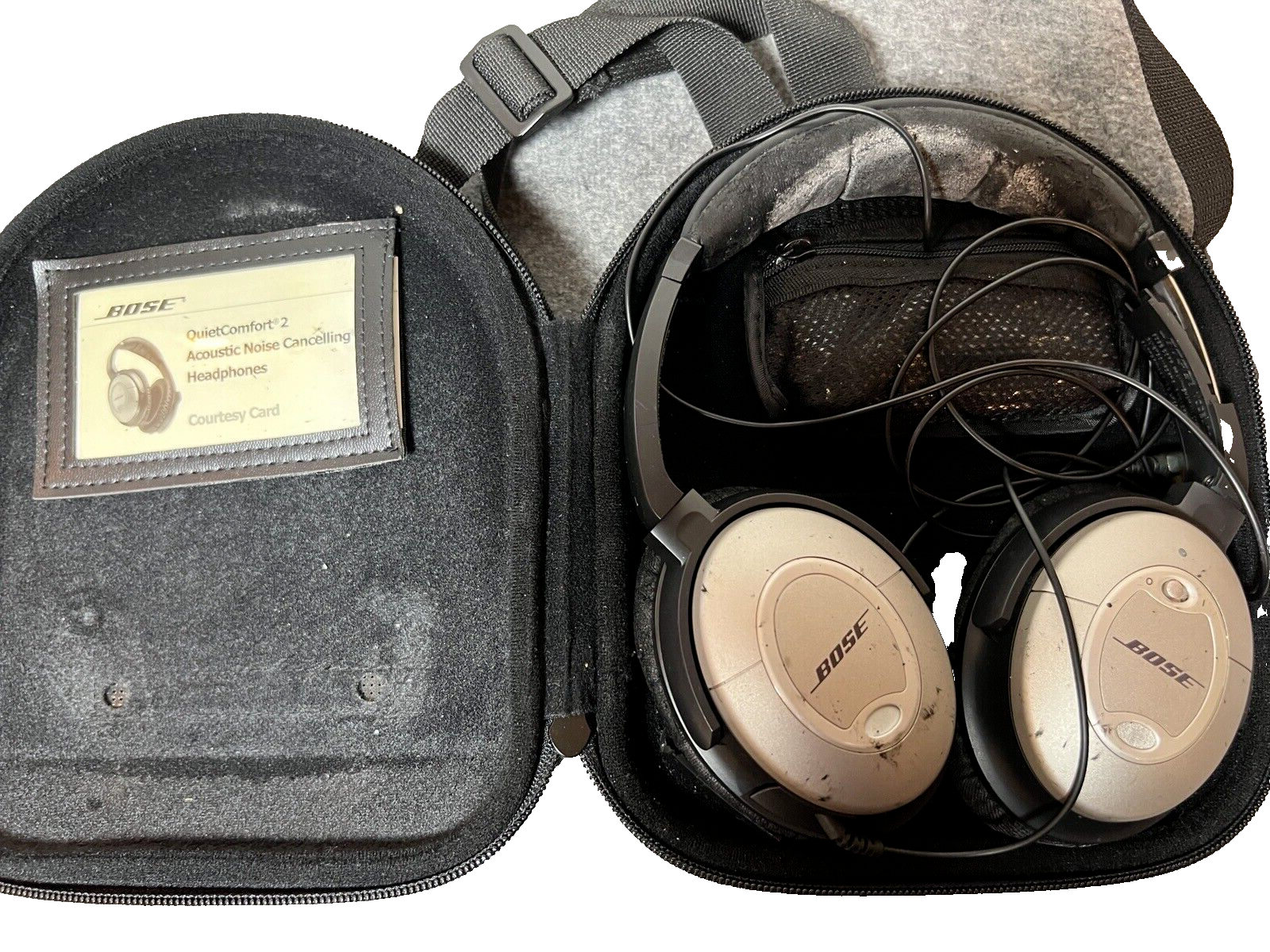 Brand:BoseColor:SilverMicrophone Type:Built-InForm Factor:HeadbandType:Ear-Cup (Over the Ear)Cable Length:6ftPersonalize:Nogtin13:Does not applyUPC:Does not applyCountry/Region of Manufacture:UnknownModel:Bose QuietComfort 2Features:Noise CancellationNumber of Earpieces:DoubleSeller Notes:“Used and not working. Damage to ear cups and padding.”Connectivity:3.5mm Jack