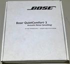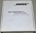 Checkout my store for more goodies: Items for sale by lukesten | eBay Bose QuietComfort 3 Acoustic Noise Cancelling Headphones Condition: New Brand Bose Model Name Noise-Cancelling-Feature;Microphone -Feature Color Silver Form Factor Over Ear Connectivity Technology Wired About this item On-ear fit: Ear cups rest gently on your ears Bose noise reduction and quality sound for travel, work and home Comfortable, lightweight design with an on-ear fit: headphones rest gently on your ears Rechargeable lithium-ion battery: 25 hours average use per charge Fold-flat ear cups for easy storage in slim carrying case Product Description Product Description Compact, on-ear QuietComfort 3 headphones offer a proven combination of Bose noise reduction, audio performance and comfortable fit. Proprietary Bose technologies deliver quality sound from these award-winning headphones - and make listening a pleasure just about anywhere. From the Manufacturer Bose® QuietComfort® 3 Acoustic Noise Cancelling® Headphones High-performing noise reduction headphones for travel, work and home Enjoy your music and movies even more, with clear and lifelike sound Comfortable and lightweight on-ear fit Rechargeable lithium-ion battery and charger included Ear cups fold flat in slim carrying case for easy storage Welcome to a quieter world Compact, on-ear QuietComfort 3 headphones offer a proven combination of Bose® noise reduction, audio performance and comfortable fit. Proprietary Bose technologies deliver quality sound from these award-winning headphones - and make listening a pleasure just about anywhere. Hear the difference for yourself Advanced noise reduction and a comfortable fit let you enjoy hours of easy listening. Wear QC®3 headphones when you fly, and you'll notice a dramatic reduction in engine noise the moment you turn them on. For quality audio, simply plug the cable into your portable player or the in-flight entertainment system. Use QC3 headphones at home or at work, and distractions fade softly into the background. Of course, no headphones will eliminate all noise. But Bose technologies in QuietComfort 3 headphones work together to make almost any listening experience more rewarding. Proven performance QC3 headphones feature Bose Acoustic Noise Cancelling technology that electronically identifies, and then dramatically reduces, the noise around you, while preserving the audio or tranquility you desire. Proprietary signal processing and audio reproduction technology also provide lifelike audio across the full range of sound - including deep low tones - from relatively small and lightweight headphones. With ambient noise reduced, the high quality sound these headphones provide becomes even more apparent. You may hear nuances in your favorite tracks that you've never noticed before. And the soft-cushioned, easy-on-the-ears fit lets you listen comfortably for hours. Fine traveling companions QC3 headphones come with a rechargeable lithium-ion battery and convenient wall charger. You can expect 25 hours of use from a fully charged battery, with a lifespan of approximately 500 charging cycles. An airline adapter plug and protective carrying case are also included. Earcups fold flat for easy storage in the slim case. Acoustic Noise Cancelling® headphone technology , a proprietary Bose innovation, electronically identifies and reduces noise while faithfully preserving the audio or tranquility you desire. QC3 headphones make an ideal travel companion, effectively reducing the noise around you to create a more tranquil environment. Compact on-ear design with proprietary soft cushions that establish a critical acoustical seal - helping to further reduce noise while providing a comfortable fit. TriPort® acoustic headphone structure , another Bose exclusive, features tiny vents in the earcups to enable a tonally-balanced audio performance - including reproduction of deep, low notes?from relatively small and lightweight headphones Active equalization electronically tunes the headphones' frequency response, enabling outstanding audio performance. Rechargeable lithium-ion battery provides an average of 25 hours of reliable use per charge. Small wall-socket charger also included. Single, detachable audio cable offers greater convenience than standard Y-cables. Fold-flat earcups rotate 90 degrees for easy storage and portability in the included case. Slim carrying case helps protect headphones and accessories during travel. Product Details Overall headphone dimensions 7.38"H x 5.25"W ( 19 cm x 13.5 cm ) Ear cushion outside dimensions 2.88"H x 2.25"W ( 7.5 cm x 6 cm ) Weight with cable 5.1 oz (145 g) Battery output power 3.7VDC, 200mAh Battery life Approximately 25 hours per charge; 500 charging cycles What's in the box QuietComfort 3 headphones Rechargeable lithium-ion battery Battery charger Detachable audio cable Airline adapter Carrying case THANK YOU FOR SHOPPING WITH USCheckout my store for more goodies - Items for sale by lukesten | eBay