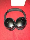 Unwind to your favorite tunes with the Bose QuietComfort 35 II Bluetooth Wireless Over-Ear Headphones, designed for unparalleled audio quality and comfort. These headphones feature an adjustable headband ensuring a perfect fit for all-day wear. The noise cancellation technology allows you to immerse yourself in your music without external distractions, while the built-in microphone makes it easy to take calls on the go. Crafted in a sleek black finish, these ear-cups provide both style and functionality. They are equipped with NFC Bluetooth pairing for seamless connectivity and come with a rechargeable battery for extended use. The leather cushions ensure durability, and the foldable design makes them convenient for travel. Whether you're at the studio, being a DJ or enjoying live monitoring, these headphones are tailored for exceptional sound fidelity. Selling due to never using them. The audio in these are by far the best you will find in a headset. Happy shopping!