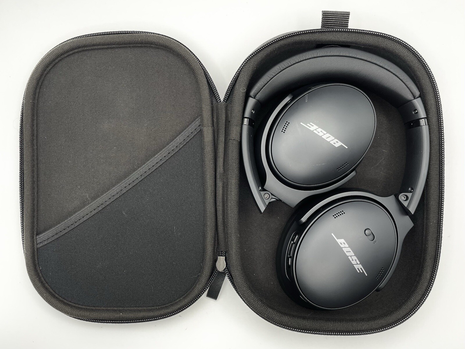 This item is in great condition. Charger is not included. The minute you put on Bose QuietComfort 45 Wireless Noise Cancelling Headphones, you feel it — the iconic quiet that allows you to concentrate on your music or work on your passion projects. Plus, with these wireless headphones, you can experience the comfort and crystal-clear sound that can only come from Bose headphones. The soft, plush cushions of these Bose over ear wireless headphones seal you in. Then you flip the switch and whoosh — the world fades. The music starts. It’s love at first listen. The original Bluetooth headphones are back, now with signature active noise cancelling technology and premium comfort. Plus proprietary technology for deep, clear sound, and adjustable EQ so you can tune your music to your liking. Bose QuietComfort 45 over-ear headphones. An icon reborn. Now with better quiet. Acclaimed Noise Cancelling — it started right here with the original QuietComfort headphones. With an additional external microphone (six total) and enhanced signal processing, QC45 wireless headphones cancel out noise so it doesn’t reach your ears. More music. Greater awareness of your surroundings . Aware Mode brings the outside world in with microphones that pick up the sounds around you and play them naturally through the wireless headphones. It’s your music and your environment at the same time. Your music. In high-fidelity. TriPort acoustic architecture vents the earcups to add depth and fullness without increasing their size. Adjustable EQ allows you to set the bass, mid-range, and treble levels to your personal preferences or select one of several preset options. More music from longer battery life. QuietComfort 45 over-ear headphones give you more play time than their predecessor, with up to 22 hours of battery life on a single charge. And they charge via USB-C in up to 2.5 hours. A quick, 15-minute charge gives you up to 3 hours of play time. (Actual battery life may vary) Clearer conversations every time. The improved voice pickup of QC45 Bluetooth headphones exceeds the competition. With the addition of a fourth external microphone, the headphones better focus on your voice. Plus, a noise-rejecting algorithm filters out environmental sounds for clearer conversations. Customized control. The Bose app walks you through guided setup, making it easy to get started. Plus, access all noise cancellation settings, manage your Bluetooth connections, enable a shortcut, and more. New and improved comfortable headphones that last. Updated design features smooth, pleatless cushions and earcup caps. Synthetic leather, impact-resistant nylon, and custom cast-metal hinges provide comfort and durability. Add minimal clamping force, and you might forget you’re wearing them. Bose SimpleSync technology. You can pair your headphones with select Bose smart soundbars for a personal TV listening experience. Independent volume controls allow you to lower or mute your soundbar while keeping your headphones as loud as you like. Connect at the press of a button.