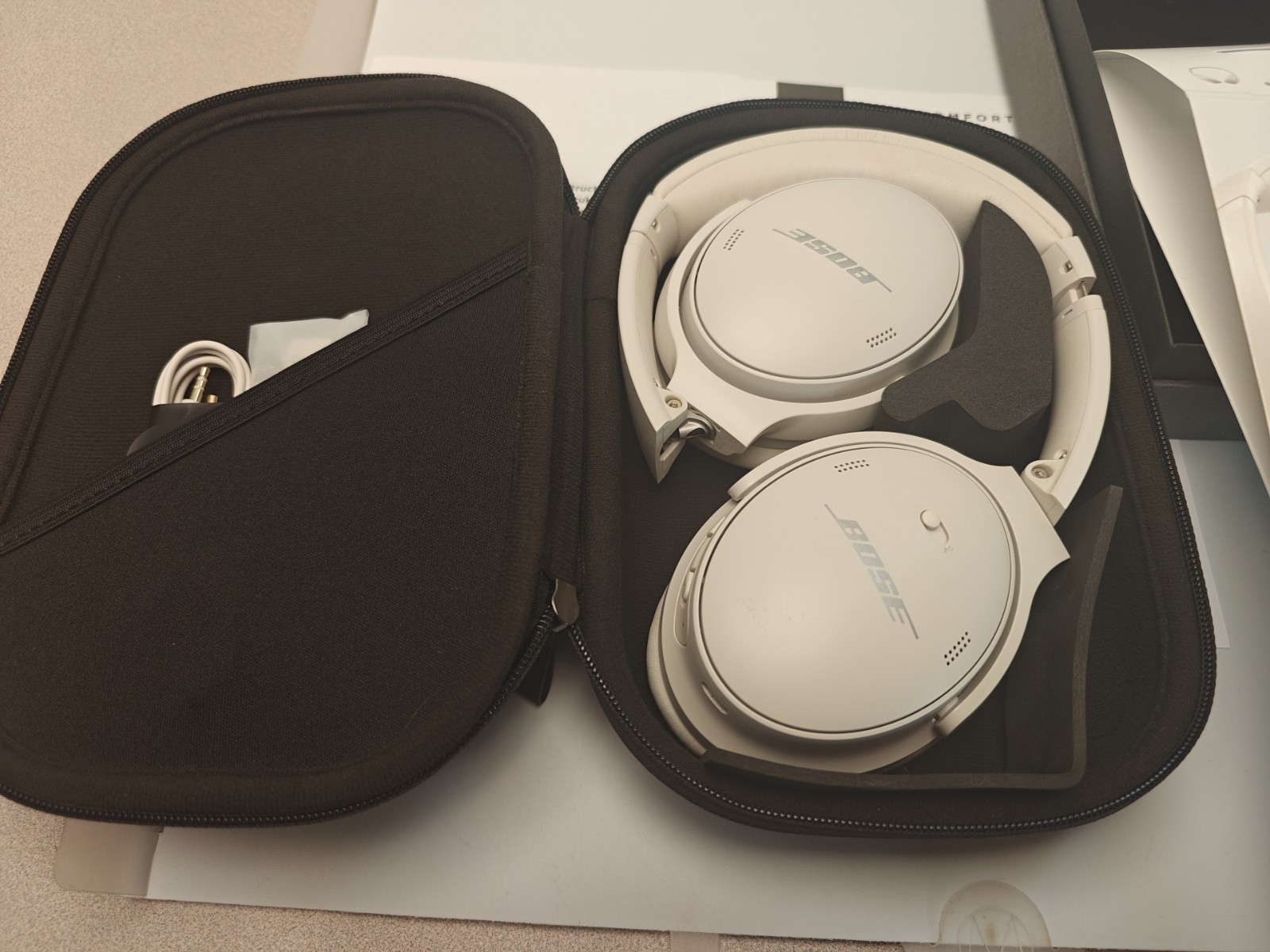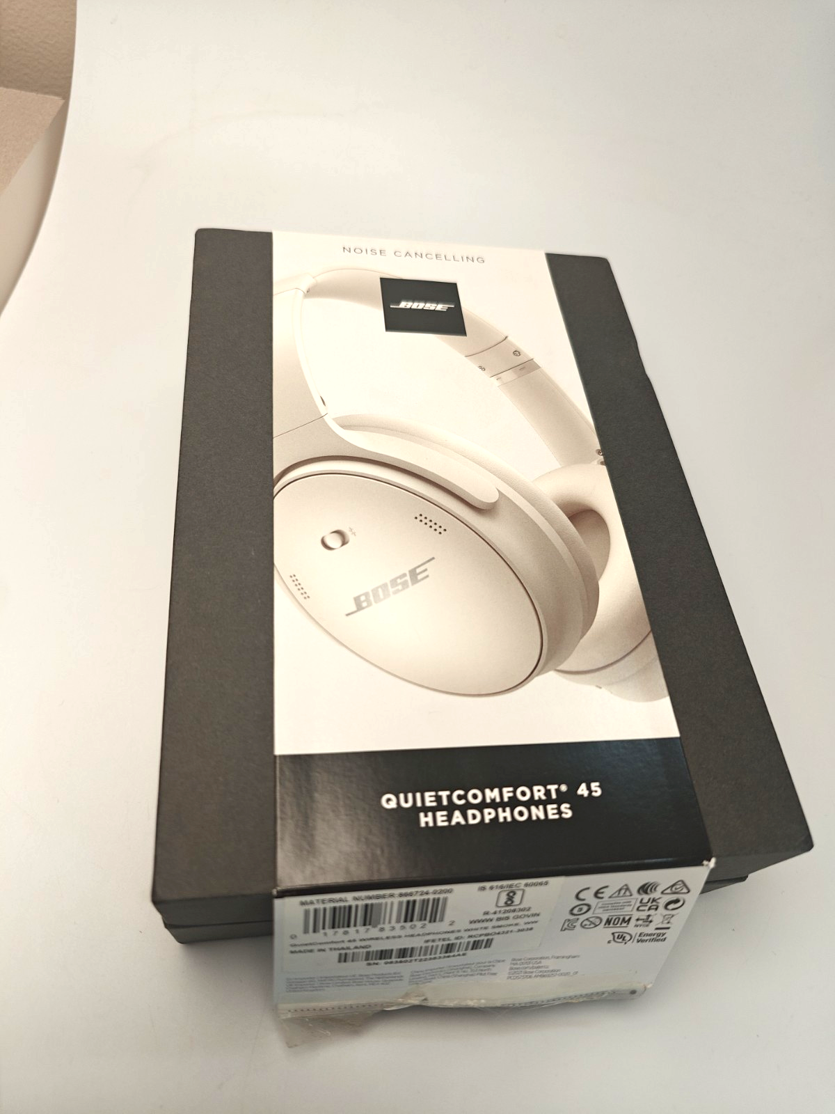 The Bose QuietComfort 45 Wireless Over-Ear Headphones in White Smoke are a premium audio accessory that combines high-quality sound with advanced noise cancellation technology. These were a gift last Christmas , and I really don't use them enough to justify keeping them i would rather pass them on to somebody who can get some use out of them.They are in mint condition come complete with the original boxes packaging I never even used the case. That was for it, it's still in the plastic all the paperwork is intact. As the original input cable and charging cable never taken out of the package as well everything is in beautiful new condition as shown it connects and works perfectly just wish I could use it more. It holds the charge forever well not forever but very long, time, very easy to do the setup like I said, I would keep them but I just don't use them. Someone will get a great deal. Please see all photos for the exact condition.And exactly what is included will be shown in the photos. With a sleek headband design and comfortable ear-cup form factor, these headphones provide immersive listening experiences. Featuring Bluetooth connectivity, built-in microphone, and a charger included, they offer convenience and ease of use. Designed by Bose, a trusted brand in audio technology, the QuietComfort 45 headphones deliver superior sound performance and a stylish design in a sleek white smoke color.
