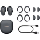 Bose Bose QuietComfort Earbuds II Limited Edition, Eclipse Grey With Portable Power Bank SKU: BOQCEIIEGP Mfr. Part: 870730-0040 P Item Includes Bose QuietComfort Earbuds II (Triple Black) - 3x Ear Tips (Small/Medium/Large) - 3x Pairs of Stability Bands (Small/Medium/Large) - Charging Case - 12" USB Cable - Quick Start Guide - Safety Sheet - Bose 1 Year Limited Warranty - Green Extreme Wireless Portable Charger Description Bose QuietComfort Earbuds II are engineered with pioneering CustomTune sound calibration technology that personalizes the audio to your ears, so you can enjoy world-leading noise cancellation and deep, immersive sound wherever you're listening to music. Engineered with pioneering Bose CustomTune technology, QC Earbuds II personalize the audio to fit your ears. When noise cancellation and sound performance are tailored to you, your music is more engaging, allowing you to feel a deeper connection to whatever you're listening to. Bose QuietComfort Earbuds II are a sleek, versatile musical companion designed to fit you and everything you do. Engineered with pioneering CustomTune sound calibration technology, these wireless earbuds personalize the noise cancellation and sound performance to fit your ears, so you get the world's best noise cancellation and deep, immersive sound with powerful bass whether you're at home or on the go. To ensure all-day comfort and a secure fit, the earbuds come with the Bose Fit Kit that includes 3 different soft, silicone ear tips and 3 different stability bands to mix and match to find your best fit. With a compact, lightweight design, you will almost forget you're wearing them. Easily control your music or adjust your preferred level of noise cancellation with the earbud's simple touch controls. Phone calls sound crystal clear. Listen for up to 6 hours on a single charge. The charging case holds 3 additional 6-hour charges for a total of up to 24 hours of listening time. IPX4 rating for sweat and water resistance. Advanced Bluetooth 5.3 capability. In-app EQ control. Legendary Sound. Personalized To You. Your music sounds best when the listening experience is tailored to you. That's why Bose QuietComfort Earbuds II are engineered with pioneering CustomTune sound calibration technology that optimizes the noise cancellation and sound performance to fit your ears. With personalized audio, you can enjoy the world's best noise cancellation and deep, immersive sound with powerful bass wherever you're listening to music. The best noise cancellation of any earbud QC Earbuds II represent a revolutionary advance in noise cancellation technology with the ability to cancel noise better than any noise-cancelling earbuds or over-ear headphones on the market. It starts with ensuring an optimal fit to your ears. The soft, silicone ear tips have an umbrella shape that creates a firm seal at the opening of your ear, reducing outside noises. Microphones then detect environmental noise and generate an opposing signal to cancel it, making your quiet sound quieter. CustomTune technology personalizes the noise cancellation to the shape of your ears to precisely soften sounds that are hardest to reduce, like voices. You and your music in perfect sync QuietComfort Earbuds II deliver lifelike, balanced sound with nuance, clarity, and depth, so you can get in the zone and feel seamlessly connected to your music. The wireless earbuds are engineered with high-performance drivers, amplifiers, and electronics that are custom-designed to fit a small package. CustomTune technology takes the sound to the next level by personalizing it to your ears, so your music sounds even more immersive and emotionally impactful. Find your best fit with the Bose Fit Kit To ensure your wireless earbuds feel comfortable and stay put no matter what you're doing, QC Earbuds II come with a Bose Fit Kit. The convenient Fit Kit includes three pairs of ear tips and three pairs of stability bands designed to fit the unique shape of your ears. Both the ear tips and stability bands are made from soft silicone for all-day comfort and a secure fit. The ear tips rest gently but securely in your ears and spread contact evenly. The stability bands hug the contours of your ears with curved fins that grip your ears for a snug fit. And since no two ears are the same, even on the same person, swap different-sized ear tips and bands to find your best fit. You're in control of your sound With Bose QC Earbuds II, you decide how much of the world you want to hear. Quiet Mode offers maximum noise cancellation, so you can feel fully immersed in your music. Want to listen to music but still hear what's going on around you? Aware Mode offers full transparency to hear your surroundings with striking clarity. This mode automatically applies ActiveSense technology to soften the loudest sounds, like a passing bus, to a more pleasant and balanced volume. Use the Bose Music app to disable ActiveSense or create custom noise cancellation modes. Crystal-clear, natural-sounding phone calls Use Bose QC Earbuds II to enjoy clear and natural-sounding phone conversations. Two noise-rejecting microphones in each earbud focus on the sound of your voice and filter out ambient noise and wind. Digital signal processing technology further enhances the signal to ensure your conversation is clear. Calls play through both earbuds, or you can use either bud by itself. If auto-answer is on, and you've removed your earbuds, just place them in your ear to answer. Control your music with the simple touch interface Use the simple touch interface on the wireless earbuds to control everything. This convenient interface frees your hands so you can stay focused on whatever you're doing. With simple swipes and taps, play or pause music, change the volume, and switch tracks. You can even answer calls and change the noise cancellation level, all without ever touching your phone. They know when they're in - and pause when they're out Need to pause your 