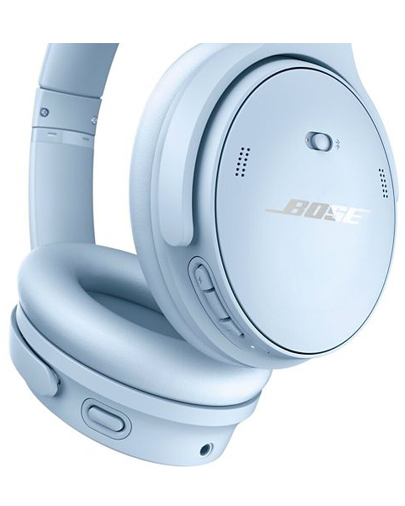https://youtu.be/m5V5jP1VCzo Bose QuietComfort Headphones Moonstone Blue Take over the tempo Customisable legendary noise cancelling, comfortable fit, adjustable EQ, and striking colours – all in one pair of iconic headphones. Go beyond the beat with sound that puts you on top of the world. Take charge of your style Meet your newest statement piece Available in Black, White Smoke, and an all-new limited-edition Cypress Green colour option, QC headphones connect to bold sound with a bold look. For diving deep into your own rhythm Quiet Mode Seal yourself in with full, legendary noise cancellation so you can block it all but the beat. Aware Mode Need to pay attention? Get full transparency to hear your surroundings, or engage in a conversation. Custom Modes Adjust your noise cancellation as you see fit, add Wind Block to tune out breezy environments, and revisit your custom noise cancelling setting at any time. Own the beat. Drop the bass. Adjustable EQ allows you to crank the bass, tweak the treble and balance the mid-range to get the sound that best suits you. Plug into the sound These over-ear headphones bring an optional audio cable with an in-line microphone to plug you into sound as bold as you, even without a Bluetooth® connection. Chin up, shoulders back, music blasting. Bose Music app The app walks you through setup, lets you choose your voice assistant, group compatible Wi-Fi-enabled products and more. Battery life Keep your marathon playlists playing with up to 24 hours* of battery life on a single charge using a USB-C®. A quick, 15-minute boost gives your Bluetooth headphones up to 4 hours of play time.** SimpleSync Pair your headphones and a Bose smart soundbar to binge your favourite show without disturbing others. What’s in the box Bose QuietComfort Headphones Carry case 3.5 mm to 2.5 mm audio cable USB-C® (A to C) cable (12") Safety sheet Headphones: 18.4 cm H x 15.24 cm W x 7.62 cm D (0.24 kg) Carrying case: 21.1 cm H x 14.5 cm W x 5.1 cm D (0.18 kg) Bluetooth range: up to 30 ft (9 m) Bluetooth version: 5.1 Battery life: Up to 24 hours* Battery charging time: Up to 2.5 hours** * Testing conducted by Bose with active noise cancelling on and audio playback at a loudness of 75 dBSPL. Battery life varies based on settings and usage. **Quick charge testing conducted by Bose by charging battery-depleted headphones for 15 minutes, then resuming audio playback at a loudness of 75 dBSPL. Battery life varies based on settings and usage. Time to achieve fully charged headphones was determined by charging battery-depleted headphones to 100%. Quick 15-minute charge: For up to 4 hours** Battery charge method: USB-C Microphone array for voice pickup built-in Bose Music app