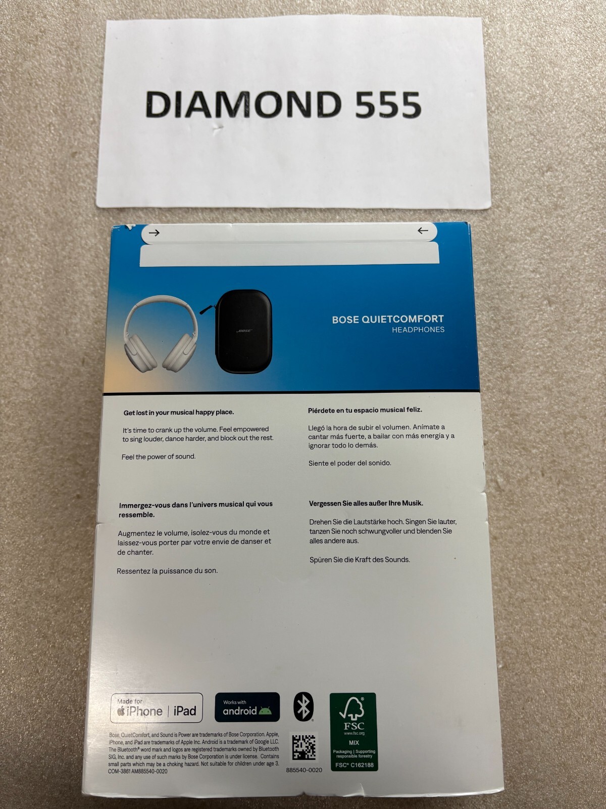 Experience unparalleled audio quality with the Bose QuietComfort Noise Cancelling Wireless Over-Ear Headphones in White Smoke. Designed for the discerning listener, these headphones feature advanced Bluetooth connectivity for a seamless wireless experience, along with a built-in microphone for clear calls on the go. The Bose QuietComfort model is renowned for its superior noise cancellation, allowing you to immerse yourself in your music without external distractions. Comfort is ensured with a cushioned headband and ear cups, making them ideal for extended listening sessions. With a sleek white finish, these headphones blend style with functionality, offering both a premium aesthetic and exceptional sound performance.