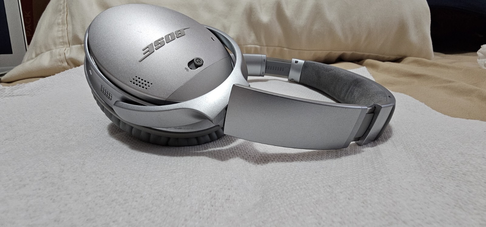 MINT CONDITION SILVER BOSE QC 35 II Headphones. Comes with Original carrying case, audio, and charging cables. ALL FEATURES AND BUTTONS WORK WITH NO ISSUES Please see photos for exact item and it's quality. Experience high-quality sound and immersive noise cancellation with these Bose QuietComfort QC35 II headphones. The wireless Bluetooth connectivity and rechargeable battery make them perfect for studio monitoring, DJing, and live monitoring. These headphones come in a sleek silver color with a comfortable headband and ear-cup design. In addition to wireless technology and noise cancellation, these headphones also feature surround sound, waterproofing, and built-in microphone.