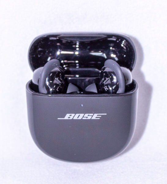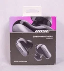 Bose QuietComfort Ultra Noise-Canceling True Wireless In-Ear Earbuds (Black) Open Box Item - Good Condition In Original Packaging. (Outer packaging has minor cosmetic imperfections.) PRODUCT FEATURES For Home and Mobile Audio Listening Immersive, Spatial Audio Mode Quiet and Aware Modes Passive and Active Noise Cancellation Dynamic Mic Mixing for Clear Calls IPX4-Rated Water and Sweat Resistance Bluetooth 5.3 Connectivity, Up to 30 Feet Up to 24-Hour Playback, Charging Case Supports SimpleSync and Bose Music App 3 Pairs of Eartips and Stability Bands PRODUCT DESCRIPTION Improving on the award-winning QuietComfort Earbuds II, the black Bose QuietComfort Ultra Earbuds True Wireless In-Ear Headphones continue to offer high-quality audio, world-class noise cancellation, CustomTune technology that auto-adjusts the noise cancellation and sound performance to your ears' liking, responsive touch controls, and a water- and sweat resistant IPX4 rating—and now immersive audio to take audio performance to an entirely new level. And with new features like Snapdragon Sound for robust low-latency Bluetooth connectivity, Qualcomm aptX Adaptive codec for achieving the highest-possible audio quality, Google Fast Pair to expedite the initial pairing process, and a new metallic finish, the QuietComfort Ultra Earbuds make listening to music a deeply personal experience. Feel your music more Breakthrough spatial audio for more immersive listening that makes your music feel more real than ever before — no matter the content or source. World-class noise cancellation and sound tailored to you. And a design that feels so good to wear. Say less. (Listen more.) Listen longer with up to 24 hours total play time QC Ultra Earbuds give you up to 6 hours of listening time (up to 4 with Immersive Audio)¹ while the included case holds up to 3 additional full charges² . Pop the buds in the case for up to 2 hours of music from a 20-minute charge. World-class noise cancellation and sound shaped to you The magic of CustomTune technology: it analyzes your ears and adapts the sound and active noise cancelling to their unique shape. The result? World-class noise cancelling earbuds and sound that's tailored to you. High-quality earbuds for comfort and stability Swap between nine potential combinations of eartips and stability bands. The soft, umbrella-shaped tips seal off the opening of your ear to reduce outside noises. And stability bands hug the contours of your ears for a snug fit. Natural-sounding phone calls Enjoy natural-sounding phone conversations. Noise-rejecting mics and focus on your voice and filter out background noise. They’ll play through both or a single earbud, whatever works for you. A powerful wireless connection with advanced Bluetooth 5.3 Bose Bluetooth earbuds offer a strong, continuous connection within 30 feet of your device. Choose single- or multi-point to keep your phone, tablet, and work or school computer paired or just focus on one. Different listening modes for different environments When it’s time to tune in and jam out, use Quiet Mode. But sometimes you need to pay attention. That’s why Aware Mode allows enough transparency to hear your surroundings or engage in conversation without taking out an earbud. Simple touch-free device controls Wireless earbuds that give you full control. Play or pause music, change the volume, and switch tracks. You can even answer calls and change the noise cancellation level, all without ever touching your phone. Customize your experience with the Bose Music app Take personalization even further with Adjustable EQ settings in the Bose Music app. Control bass, mid-range, and treble levels as you go. Or use the app to check battery life, customize a shortcut, and manage connected devices. Bose QuietComfort Ultra Earbuds vs. QuietComfort Earbuds II Bose QuietComfort Ultra Earbuds give you all the best features of the QuietComfort Earbuds II, plus our latest immersive sound technology. Also, unlike the QCE II, the Ultra Earbuds now feature Aware mode for smarter noise cancellation, and connection options like Google Fast Pair. Bose SimpleSync Pair your Bose QuietComfort Ultra noise cancelling earbuds with select Bose smart soundbars and speakers. IN THE BOX QuietComfort Ultra Noise Cancelling Earbuds - Black Charging Case USB-C to A Charging Cable 3 x Eartip Sizes 3 x Stability Bands Documentation