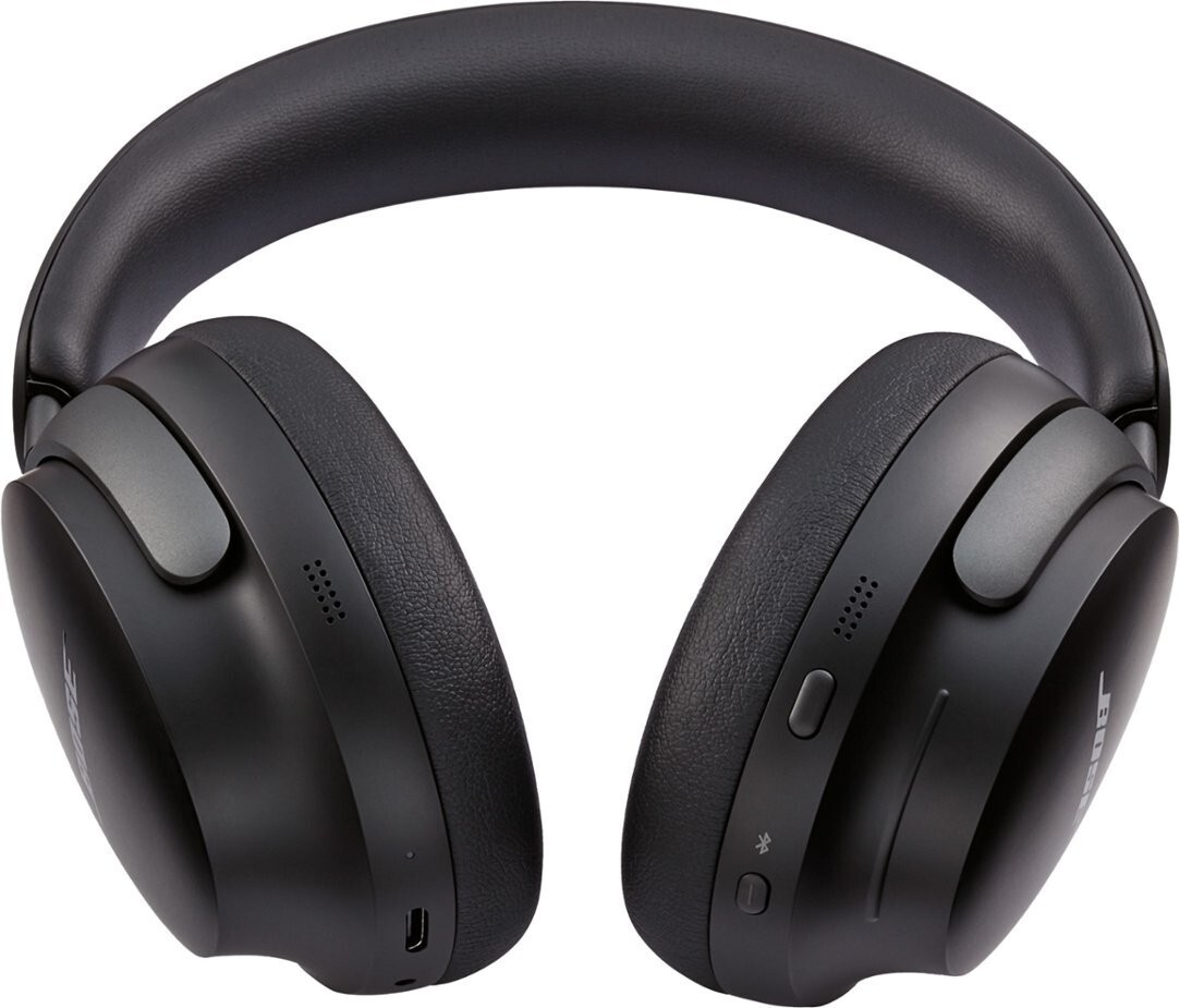 World-Class Noise Cancellation Crystal-Clear Calls Elevated Design and Comfort Intuitive Touch Controls Personalized Sound with Bose Immersive Audio Experience next-level sound with Bose QuietComfort Ultra wireless headphones. These headphones feature innovative spatial audio technology that takes the sound from inside your head and places it in front of you, creating a more natural and realistic listening experience. Listen Longer Enjoy up to 24 hours of battery life to keep your music playing through extended listening sessions. With a quick 15-minute charge, you can get up to 2.5 hours of playtime. World-Class Noise Cancellation With Quiet Mode, you can enjoy full noise cancellation to stay focused on what you're doing. Aware Mode lets you hear your surroundings when you need to. Immersion Mode combines full noise cancellation with Bose Immersive Audio for an immersive experience. Crystal-Clear Calls The noise-rejecting microphones focus on your voice and filter out background noise for clear phone calls. The headphones can play audio through both earcups or just one, depending on your preference. Smarter Connections These wireless headphones offer Bluetooth Multi-Point and Google Fast Pair for strong and convenient connections to your devices. You can choose single- or multi-point connections to stay connected to multiple devices. Sound Shaped to You CustomTune technology adapts the sound performance of the headphones to the unique shape of your ears, providing a personalized and comfortable listening experience. Elevated Design and Comfort The headphones feature a modern and sleek design with comfortable cushions that wrap around your ears and a headband that evenly distributes pressure. Metal arms add a touch of sophistication to the design. Intuitive Touch Controls You can control your music with touch controls on each earcup, allowing you to adjust the volume, skip tracks, and switch between noise-cancelling modes without needing your phone. Bose SimpleSync Sync sound between your QC Ultra Headphones and a Bose smart soundbar using SimpleSync technology. This allows you to adjust the volume independently, making it ideal for watching TV or enjoying audio discreetly. Customize Your Experience Use the Bose Music app to further personalize your experience. Adjust EQ settings to control bass, mid-range, and treble levels. You can also check battery life, customize shortcuts, and manage connected devices through the app. What's in the Box: Bose QuietComfort Ultra Wireless Active Noise Canceling Headphones - Black USB-C (A to C) 3.5 mm to 2.5 mm Audio Cable Carry Case
