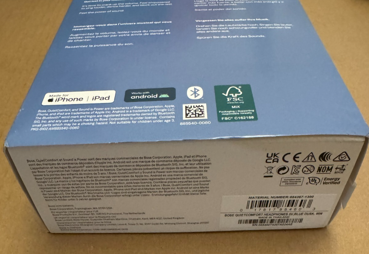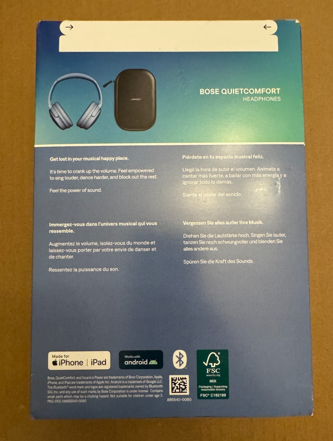 Microphone Type: Built-In Type: Ear-Cup (Over the Ear) Form Factor: Headband gtin13: 0017817854603 Cable Length: 3ft Number of Earpieces: Double Suitable For: Studio Monitoring, Live Monitoring, DJ Weight: 1.250 lbs Year Manufactured: 2020s Driver Size: 40 mm Brand: Bose Features: Wireless, Active Noise Cancellation, Playback Controls, Rechargeable Battery, Built-In On/Off Switch, Microphone Mute Button, Built-in Microphone, Call functions, Noise Isolation, Stereo, Detachable Cable, Foldable, Adjustable Headband, Bluetooth Multi-point, Sweat-Proof, Noise Cancellation, Ambient Sound Mode, Replaceable Earpads, Touch Control, Waterproof, Volume Control, Leather Cushions, Extra Bass Band: HF Model: Bose QuietComfort 25 Wireless Technology: Bluetooth Impedance: 32 ohm UPC: 0017817854603 Frequency Range: 20 Hz - 20,000 Hz Connectivity: USB-C, 3.5mm Jack, Bluetooth Color: Blue GTIN: 0017817854603