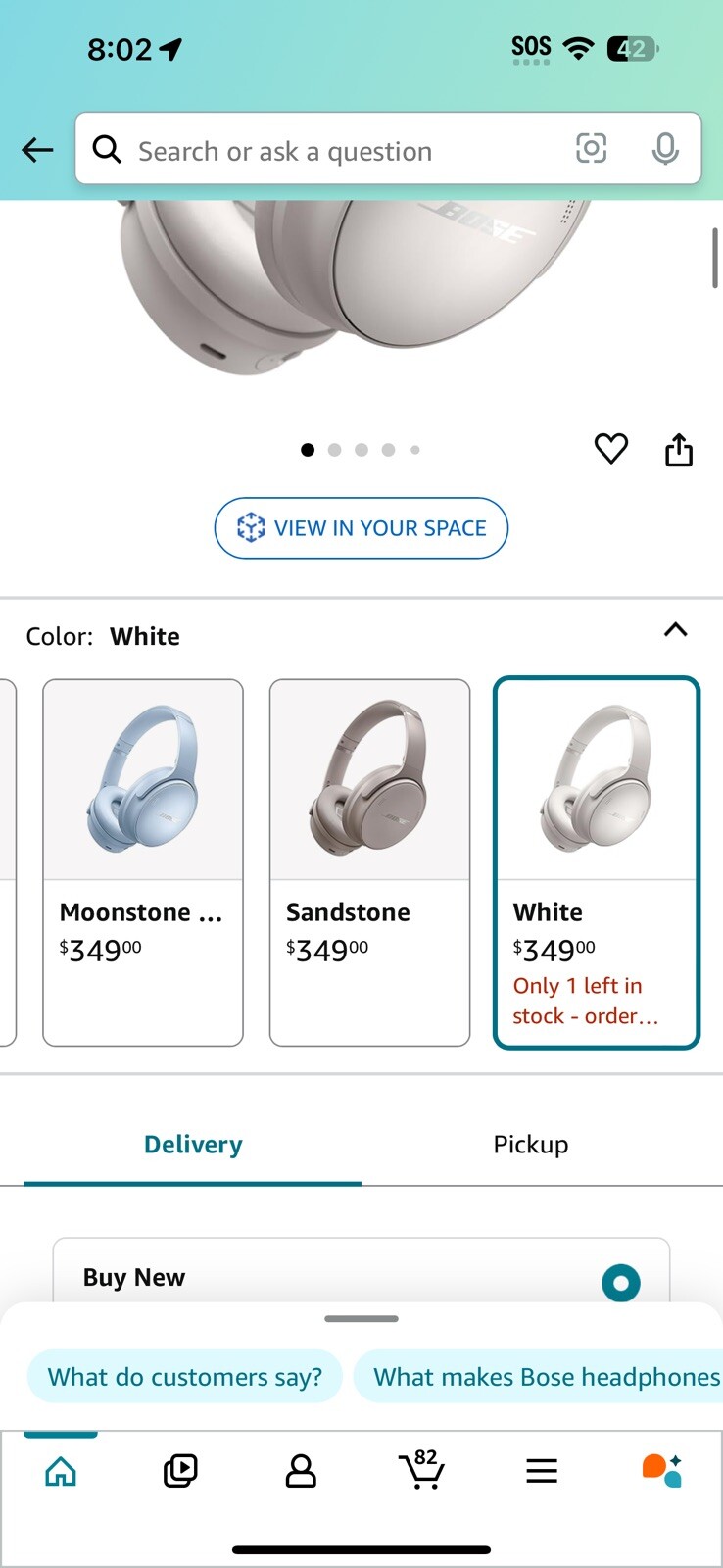 Bose QuietComfort Wireless Over-Ear Headphones - White Smoke