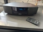 The Bose Wave Music System IV is a 4th generation music system in a platinum color. It features a built-in radio with AM/FM bands, a CD player, and an alarm clock function. The system has a headphone jack for private listening and a CD changer for convenience. With a power output of 60W RMS, it offers a powerful audio experience. This music system also includes a remote control for easy operation. Cosmetic blemish in the corner but doesn’t affect the functionality of the unit. Comes with the remote! Works great! No skipping!