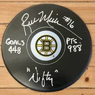 YOU ARE PURCHASING 1 Rick Middleton autographed photo puck. This puck was signed by Rick Middleton at my show in Massachusetts. Puck is inscribed points, goals, Nifty and assists...Shipping and handling $8.95 in the United States. C of A ships with item.