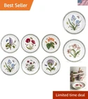 Botanic Garden " Salad Plates - Set of 6 | Assorted Floral Motifs | Fine Earthenware | Chip Resistant Glaze | Dishwasher, Microwave, Freezer, Oven Safe | Made in England Versatile Size: Deep and Classic inch serving plates are perfect for cereal, soup, salads, snacks, and more. Ideal for family dinners, movie nights, breakfast, restaurant service, parties, and holiday gifts. Durable Material: Made from Earthenware which is renowned for its durability and high quality. It offers lasting reliability and timeless charm for everyday use and special occasions. Effortless Care: Elevate your dining experience with this dinnerware set, crafted for minimal upkeep and ultra-hygienic design ensures easy cleaning. Timeless Elegance: Our exquisite floral motif collection, inspired by the beauty of nature. Each piece captures the delicate allure of blossoms. Elevate your style and captivate your guests with our floral-inspired designs. Product Care: Dishwasher, Microwave, Freezer and Oven Safe. Effortlessly maintain cleanliness and versatility without compromising on convenience or functionality. Over 30 s ago, Susan Williams-Ellis created the world-renowned Botanic Garden Pattern. Today it is one of the top-selling patterns of all time. With over thirty flowers gracing the large array of items available, this pattern has truly become a collectible treasure and a bright and beautiful way to decorate your table and home. Assorted flower motifs change as a gardener might change a garden landscape. The constant flow of new items will help you make your garden grow. .com Inspired by 19th-century botanical illustrations, Botanic Garden dinnerware features a lush array of hand-painted blossoms and butterflies. The pieces are perfect for a mix-and-match sensibility and suitable for -round dining. Made in Britain from high-quality porcelain, they are safe in the oven, freezer, microwave, and dishwasher. Thanks to their versatile shape and gorgeous illustrations, these Botanic Garden plates are tirelessly lovely from the salad course to the dessert. Each piece features a modified coupe design with a moderately deep center and a laurel-trimmed slanted rim. The central images are large and detailed with a different flower on each plate and a generous array of butterflies. The flowers are also labeled with their Latin and common names. The set include six plates, each measuring 8-1/2 inches in diameter. --Emily Bedard