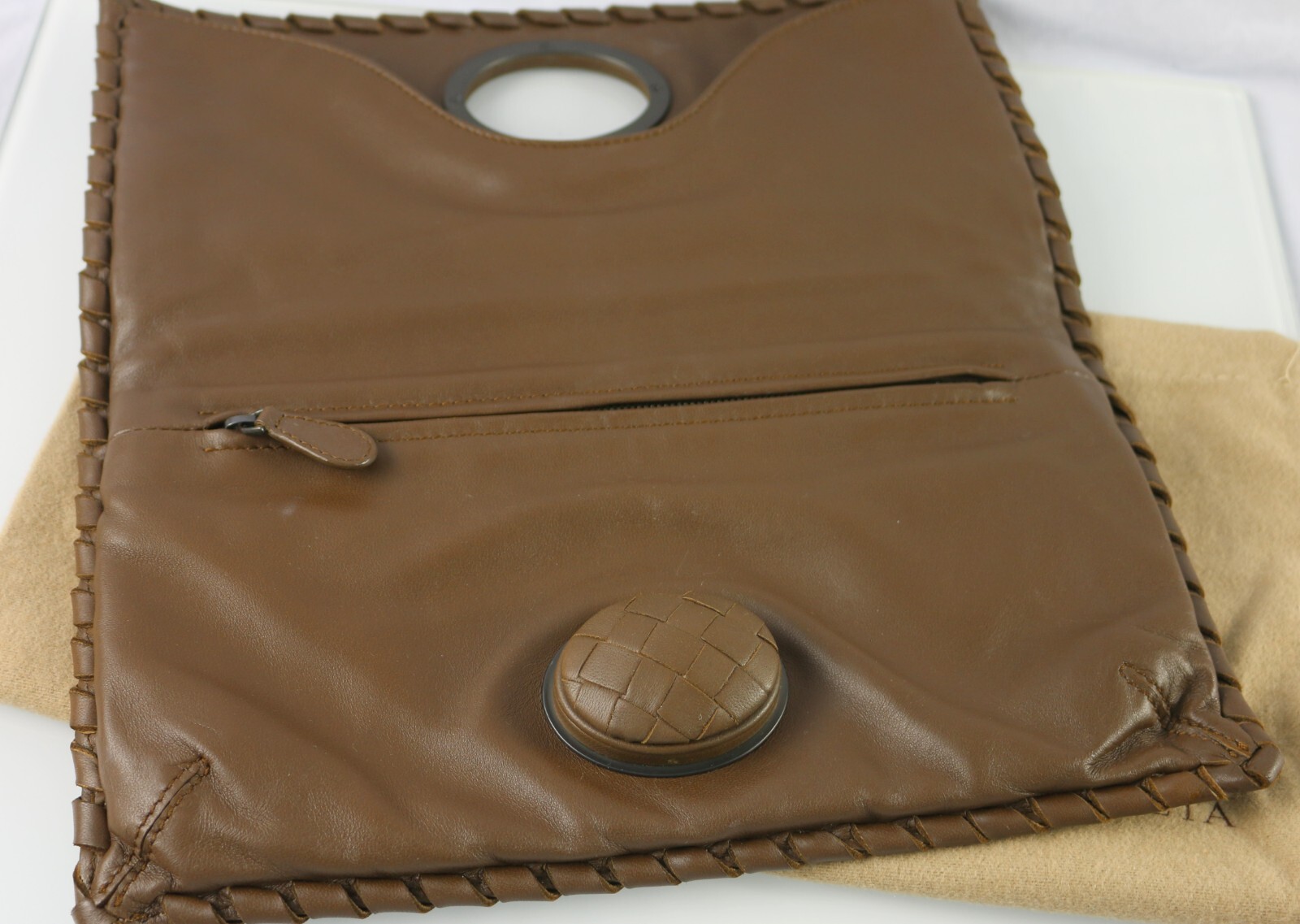 This listing is for an Authentic Bottega Veneta Clutch Bag Dimensions: 6" High x 11" Wide x 2" Deep approximately. No mirror. Pre-owned. In good condition. Clean interior. No odor . Comes with Bottega Veneta dust bag. Domestic shipping is free. A recipient's signature will be required for any item valued at $750 or higher, including tax and shipping. P lease make sure the shipping address is correct at checkout. We do not accept address change request after sale. We are happy to answer any questions and always appreciate your business! INV. ID 3823
