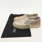 Our eBay Store About Us Contact Us Add to Favorite Sellers Bottega Veneta Gold Intrecciato Suede Dodger Slip On Sneakers 36 Make a subtle statement with these gold suede Dodger slip-ons by Bottega Veneta. Crafted in the house's iconic intrecciato pattern, they offer a sophisticated shimmer and a refined take on everyday street style. Product Details Brand Bottega Veneta Color Gold Material Leather Size 36 Certified by The Luxury Closet This item has gone through a detailed authentication process overseen by our experts. We offer a lifetime guarantee of authenticity on all our items. How We Check The in-house team of experts at The Luxury Closet is highly trained to verify the authenticity and the condition of the luxury products. They ensure that only 100% authentic items are put on sale.The evaluation process is unique with its own mix of assessment criteria and differs according to the category. Each item is evaluated based on the following combination of hallmarks, hardware, stitching, symmetry, material, craftsmanship, stamping, codes, hologram stickers, and packaging. Our authenticators also check if the items have been modified or amended (e.g., aftermarket diamonds, replaced batteries, repaired bags, etc.) International Buyers Import duties, taxes and charges are not included in the item price. These charges are the buyers responsibility. Please check with your country’s customs office to determine what these additional cost will be prior to buying.