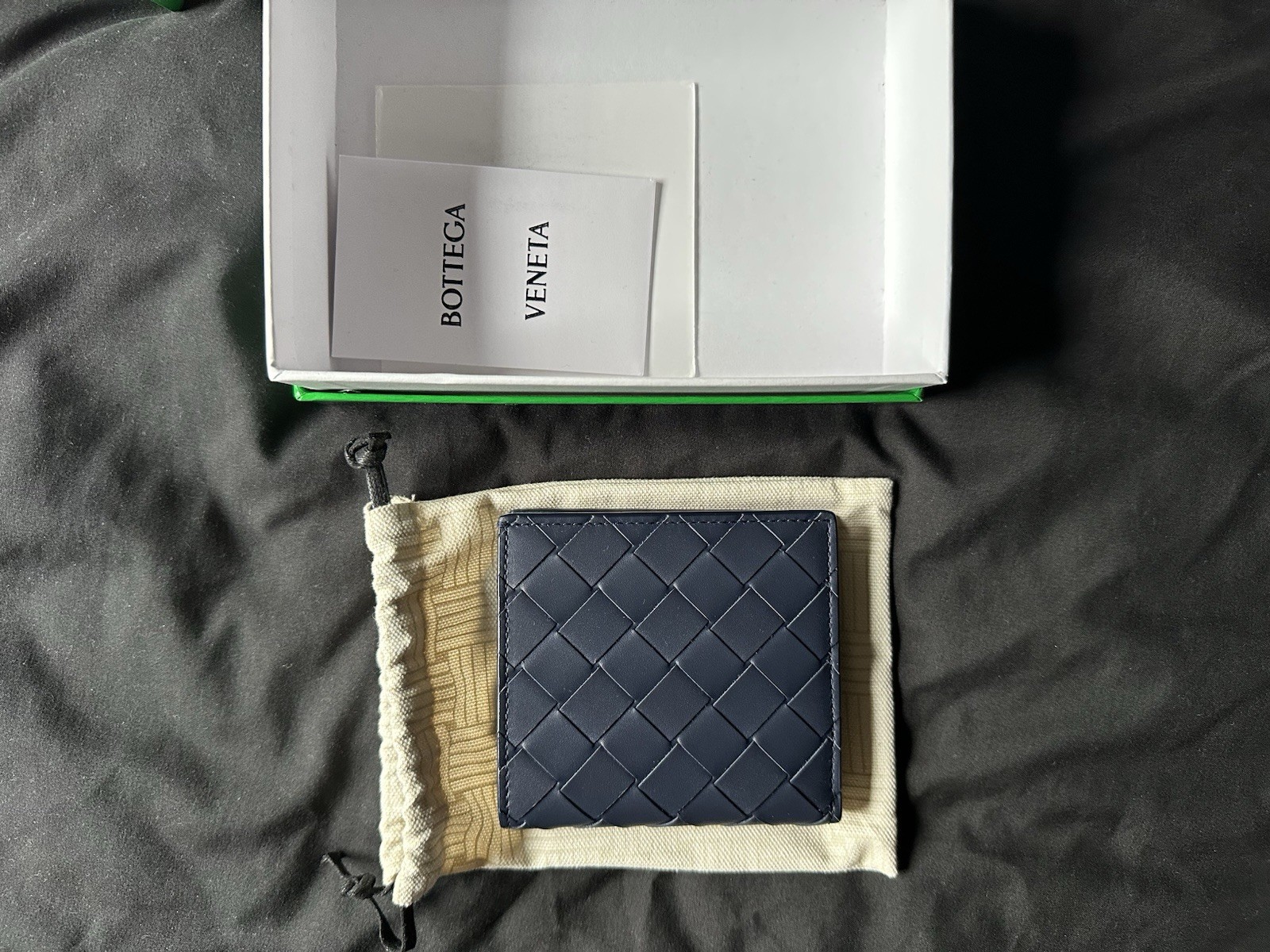 The Bottega Veneta Intrecciato Slim Wallet in Cypress/Abyss is a high-quality leather wallet designed for men. Crafted in Italy, this bifold wallet features a sleek solid pattern with a unique interwoven design. It includes multiple credit card slots and a folding design for added convenience. Perfect for those looking for a stylish and functional accessory to complement their wardrobe. NEW! IN HAND! NEVER USED!