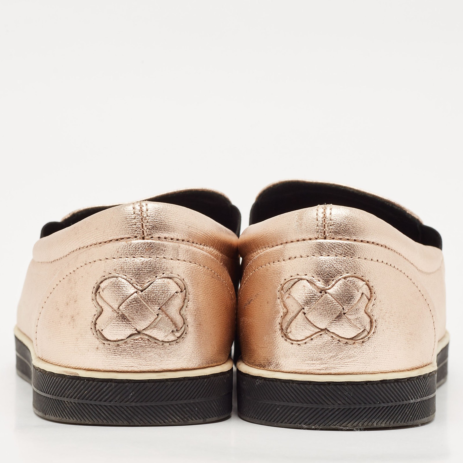 With signature intrecciato leather in a playful metallic pink, these Bottega Veneta slip ons bring instant style to casual outfits. Great with joggers or a midi skirt, they fuse comfort with contemporary flair.Certified by The Luxury Closet - This item has gone through a detailed authentication process overseen by our experts. We offer a lifetime guarantee of authenticity on all our items. Import duties, taxes and charges are not included in the item price. These charges are the buyers responsibility. Please check with your country’s customs office to determine what these additional cost will be prior to buying. Our eBay Store About Us Contact Us Add to Favorite Sellers Bottega Veneta Metallic Pink Intrecciato Leather Slip On Sneakers Size 38.5 $184.8 With signature intrecciato leather in a playful metallic pink, these Bottega Veneta slip ons bring instant style to casual outfits. Great with joggers or a midi skirt, they fuse comfort with contemporary flair. Product Details Brand Color Metallic Dimensions Material Leather Size 38.5 Outsole Width 10 CM Outsole Length 28.5 CM Heel Height Includes The Luxury Closet Packaging Certified by The Luxury Closet This item has gone through a detailed authentication process overseen by our experts. We offer a lifetime guarantee of authenticity on all our items. How We Check The in-house team of experts at The Luxury Closet is highly trained to verify the authenticity and the condition of the luxury products. They ensure that only 100% authentic items are put on sale.The evaluation process is unique with its own mix of assessment criteria and differs according to the category. Each item is evaluated based on the following combination of hallmarks, hardware, stitching, symmetry, material, craftsmanship, stamping, codes, hologram stickers, and packaging. Our authenticators also check if the items have been modified or amended (e.g., aftermarket diamonds, replaced batteries, repaired bags, etc.) International Buyers Import duties, taxes and charges are not included in the item price. These charges are the buyers responsibility. Please check with your country’s customs office to determine what these additional cost will be prior to buying.