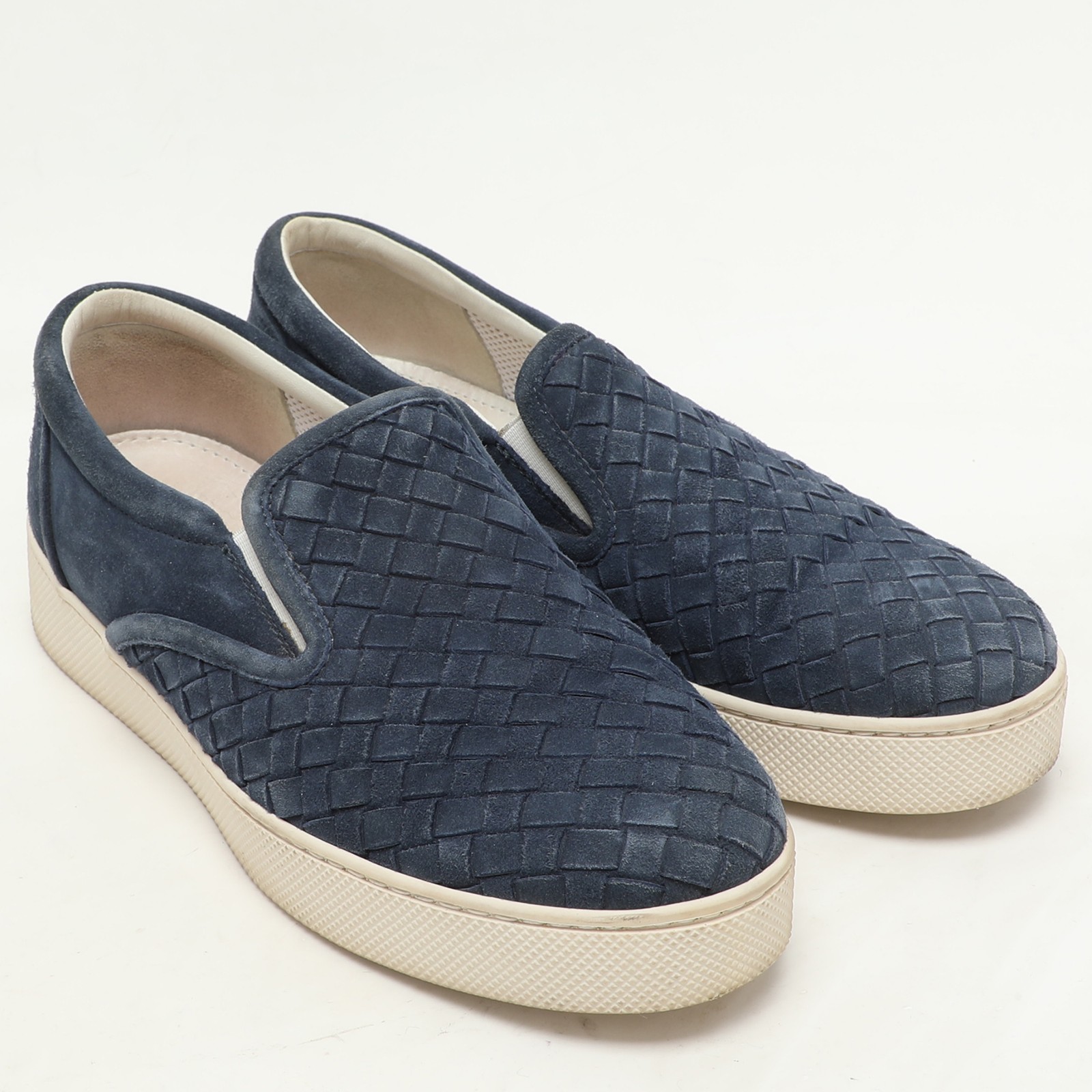 Coming in a classic silhouette, these designer sneakers are a seamless combination of luxury, comfort, and style. These sneakers are finished with signature details and comfortable insoles.Certified by The Luxury Closet - This item has gone through a detailed authentication process overseen by our experts. We offer a lifetime guarantee of authenticity on all our items. Import duties, taxes and charges are not included in the item price. These charges are the buyers responsibility. Please check with your country’s customs office to determine what these additional cost will be prior to buying. Our eBay Store About Us Contact Us Add to Favorite Sellers Bottega Veneta Navy Blue Intrecciato Suede Dodger Slip On Sneakers Size 36 $447.7 Coming in a classic silhouette, these designer sneakers are a seamless combination of luxury, comfort, and style. These sneakers are finished with signature details and comfortable insoles. Product Details Brand Color Navy Blue Dimensions Material Suede Size 36 Outsole Width Outsole Length Heel Height Includes Certified by The Luxury Closet This item has gone through a detailed authentication process overseen by our experts. We offer a lifetime guarantee of authenticity on all our items. How We Check The in-house team of experts at The Luxury Closet is highly trained to verify the authenticity and the condition of the luxury products. They ensure that only 100% authentic items are put on sale.The evaluation process is unique with its own mix of assessment criteria and differs according to the category. Each item is evaluated based on the following combination of hallmarks, hardware, stitching, symmetry, material, craftsmanship, stamping, codes, hologram stickers, and packaging. Our authenticators also check if the items have been modified or amended (e.g., aftermarket diamonds, replaced batteries, repaired bags, etc.) International Buyers Import duties, taxes and charges are not included in the item price. These charges are the buyers responsibility. Please check with your country’s customs office to determine what these additional cost will be prior to buying.