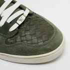 Our eBay Store About Us Contact Us Add to Favorite Sellers Bottega Veneta Olive Green Suede and Intrecciato Leather High Top Sneakers $300 Bottega Veneta redefines sneakers with rich olive suede and signature Intrecciato leather panelling. The high-top design merges heritage craftsmanship with streetwear cues. Wear them to elevate casual fits or contrast tailored separates. Product Details Brand Bottega Veneta Color Green Includes The Luxury Closet Packaging Outsole Length 29 cm Outsole Width 10 cm Size 42 Certified by The Luxury Closet This item has gone through a detailed authentication process overseen by our experts. We offer a lifetime guarantee of authenticity on all our items. How We Check The in-house team of experts at The Luxury Closet is highly trained to verify the authenticity and the condition of the luxury products. They ensure that only 100% authentic items are put on sale.The evaluation process is unique with its own mix of assessment criteria and differs according to the category. Each item is evaluated based on the following combination of hallmarks, hardware, stitching, symmetry, material, craftsmanship, stamping, codes, hologram stickers, and packaging. Our authenticators also check if the items have been modified or amended (e.g., aftermarket diamonds, replaced batteries, repaired bags, etc.) International Buyers Import duties, taxes and charges are not included in the item price. These charges are the buyers responsibility. Please check with your country’s customs office to determine what these additional cost will be prior to buying.