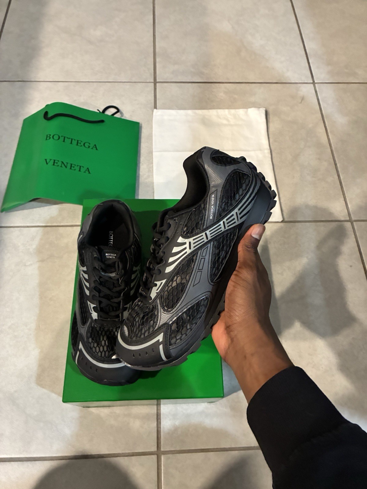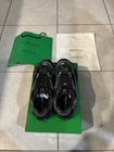 The Brand New Bottega Veneta Orbit Size 44/11 Men’s Black sneakers feature a classic round toe shape and lace-up closure for a stylish and comfortable fit. Made with high-quality leather, these shoes are perfect for casual occasions and offer a touch of comfort with a leather lining and insole. The sleek black color and solid pattern make them versatile for fall and spring seasons. Crafted in Italy by the renowned brand Bottega Veneta, these sneakers exude a sense of luxury and style with a modern design and standard shoe width.