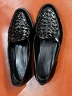 Authentic Bottega Veneta women's patent leather loafers are a stylish and versatile addition to any wardrobe. The slip-on design and solid black color make them perfect for casual occasions during fall, and spring seasons. Crafted from high-quality leather with a woven type, these loafers feature a stylish outsole and leather lining for comfort. Good -fair condition/please see photos. The brand's reputation for luxury and craftsmanship is evident in these elegant shoes, making them a must-have for any fashion-forward woman looking for a classic and timeless footwear option.