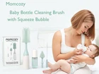 First Bubble-Producing Cleaning Brush Revolutionize your bottle cleaning routine with our innovative press-to-foam silicone brush! Say goodbye to hard-to-foam brushes on the market, our press-to-foam structure ensures dense foam for a thorough clean. Versatile Cleaning Tools Momcozy bottle brush set includes different brush heads to cater to various cleaning needs: bottle brush head for bottles, angled brush head for teats, and silicone tube brushes for narrow openings like straws. Ultra-Soft Silicone Bristles Our silicone bristles are gentle yet effective, ensuring a scratch-free clean for your bottles. The removable design and compact size make it convenient to carry around in the included travel bag. Convenient Storage A convenient hanging loop helps keep the brush tucked tidily away when off duty. Dishwasher safe so you can throw in the dishwasher every now. Flexible Mini-Brush The flexible mini brush tackles straws, spouts, and hard-to-reach crevices. 360° Comprehensive Cleaning With multiple cleaning tools for different diameters, our brush set allows you to clean all angles and corners of your bottles with ease. Safe and Clean Crafted from food-grade silicone, our bottle brush set is BPA, PVC, and phthalate-free. The non-slip handles offer a comfortable grip and can be hung up for easy storage. Step 1 Step 2 Step 3 Step 4 Suitable for Different Bottles This bottle cleaning brush is great for scrubbing & cleaning your Water Tumbler, Beer Bottles, Kombucha, Wine Decanter, Hummingbird Feeders, Narrow Neck Water Bottles, Coffee Travel Mugs, Baby Bottles and other Sports Bottles. Mom's Must-have Gifts List Don't Hesitate,Baby's Health Is Our Top Priority! Momcozy baby brush set is perfect for parent-child travel,family, airport, nursery room &other outdoor activities.A sweet and considerate gift for baby,pregnant women and new moms.