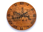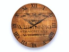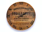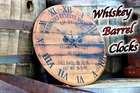 If you are looking finely handcrafted artisan furniture and home decor you have found the right shop. We have been specializing in Bourbon Whiskey Barrel designs for a decade now and our work truly speaks for its self. With thousands of items sold all over world and with our excellent customer service Whiskey Expressions will be the right shop for your whiskey barrel decor needs. Every single item is fully handmade here in the USA. It's time for whiskey and with this beautifully handcrafted Whiskey Barrel Wall Clock you will always know what time it is. Made from genuine aged bourbon barrels, this large rustic wooden wall clock is high quality with amazing attention to detail. It will be a great focal point in any living room, kitchen, home bar or wherever a true whiskey enthusiast wants to place it. Dimensions: 21" Diameter IMPORTANT NOTE: We use real bourbon barrel heads to make our clocks. Old and reclaimed barrel tops will have imperfections. They may have cracks, splits, smudges, and stains. NOT all barrel heads will look the same or have the same distillery stamp. They will be in random positions and places. In case we run out of the one you choose, please let us know what your second option might be. Or please allow couple extra weeks for our new shipment to arrive. Clock kit dose not come installed. This is to prevent them from being damaged during shipping. If they do not work properly please let us know right away. We will send replacement. To hang you will have to use screws 2.5" or 3" long in order for the hangers to catch safely and properly.