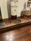 This is a Bourbon/Scotch Glencairn glass flight tasting board. An absolute must for tasting different Whiskeys. This will hold 3 glasses. It was made from a barrel stave. A great addition to your Whiskey tasting party. Glasses and alcohol are not included. Approximate dimensions: 17 inches long 3 inches wide 1 inch thick