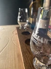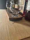 This is a Bourbon/Scotch Glencairn glass flight tasting board. An absolute must for tasting different Whiskeys. It was made from solid red oak and holds 4 glasses finished with an English Chestnut wood stain. A great addition to your Whiskey tasting party. Glasses and alcohol are NOT included. Repeat, NOT included. That means that when this item arrives there will not be any glasses or bourbon included with it. You will receive the flight board but NOT glasses. Approximate dimensions: 12 inches long 3.75 inches wide .75 inch thick
