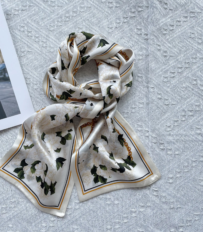 $ 8.29100% Silk 12 Momme Brown Line Print Scarf with Double-Layer Ribbon 145x15cm