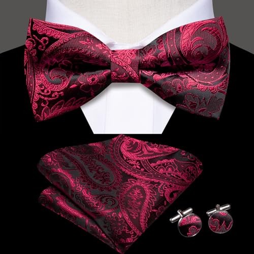 $ 12.03Men's Pre-Tied Bow Tie with Pocket Square & Lapel Pin in Black Green Paisley