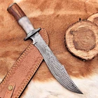 CUSTOM HAND MADE HAND FORGED DAMASCUS STEEL BOWIE HUNTING KNIFE SURVIVAL CAMPING HIKING BUSHCRAFT CAMEL BONE & WOOD WITH DAMASCUS STEEL GUARD HANDLE This superb design knife is hand forged. Blade of this knife has a nice file work and is made of 512 layers of 4340 stainless steel and 1075 high carbon steel and hardness 55-58 HRC . This robust knife is lab tested under intense conditions, the balance and shape of this knife ensures perfect grip. Overall Length: 15" Inches Blade Length: 10" Inches Handle Length: 5" Inches Damascus Design: Ladder Pattern Layers: 512 Package Includes: with Sheath Care Instructions: Keep the knife dry after each cleaning. Warning: Keep fingers clear of blades. Store away from children.